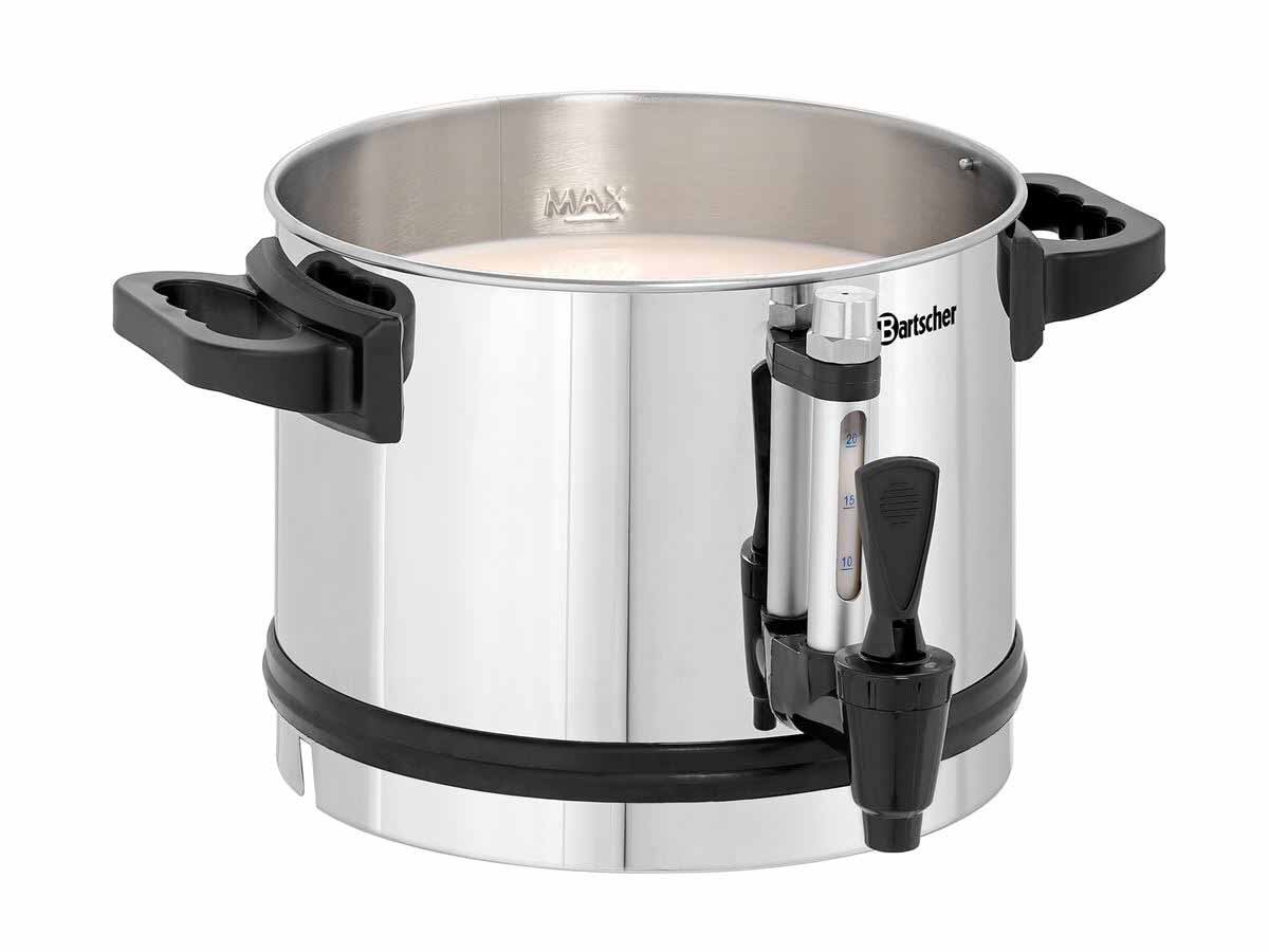 Mit dem Milchdispenser-Aufsatz für Bartscher PRO II 40 und 60 wird das Erwärmen und Warmhalten von Milch besonders platzsparend und komfortabel. Einfach direkt auf die Kaffeemaschine aufsetzen – ganz ohne zusätzliche Energiequelle. Der Aufsatz mit 4?Liter Inhalt ermöglicht die indirekte Erwärmung über die Hitze der Kaffeemaschine. Dank Füllstandsanzeige und 200?mm Gläser-/Tassenhöhe eignet er sich optimal für den Einsatz am Buffet oder in der Gastronomie. Passendes Design für den nahtlosen Look mit Ihrer PRO II Kaffeemaschine.