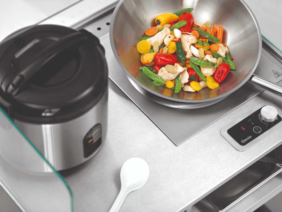 Der Einlegeboden ist ausgelegt für den Induktionswok IW35-EB. Die neutrale Stellfläche mit separatem Kabelschacht eignet sich perfekt für einen Reiskocher oder als Vorbereitungs- und Arbeitsfläche genutzt werden.