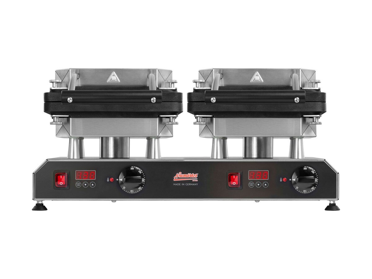 Das Neumärker Thermocook® Twin 2x 230 V Backsystem ist ein multifunktionales Gerät, das durch seine auswechselbaren Platten eine Vielzahl von Anwendungsmöglichkeiten bietet. Mit einem digitalen Timer und einer thermostatischen Regelung bis 300°C ist es ideal für den professionellen Einsatz in der Gastronomie.