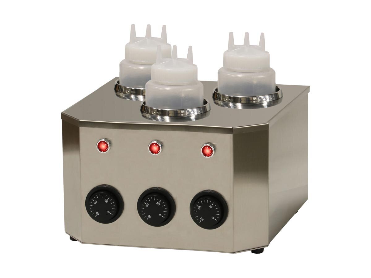 Der Neumärker Schoko-Creme Wärmer III 2.0 ist die perfekte Lösung, um Nuss-Nougat-Creme und andere süße oder würzige Soßen wie Vanille- oder Karamellsoße gleichmäßig zu verteilen. Ideal für Crêpes, Waffeln, Eiscreme und viele andere Süßspeisen, sorgt der Wärmer für eine gleichmäßige Temperatur und einfaches Dosieren.