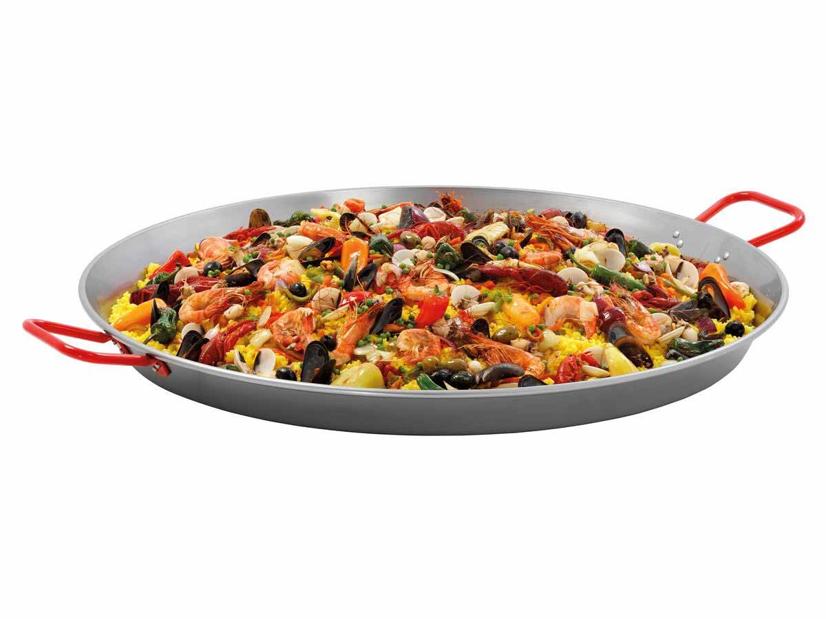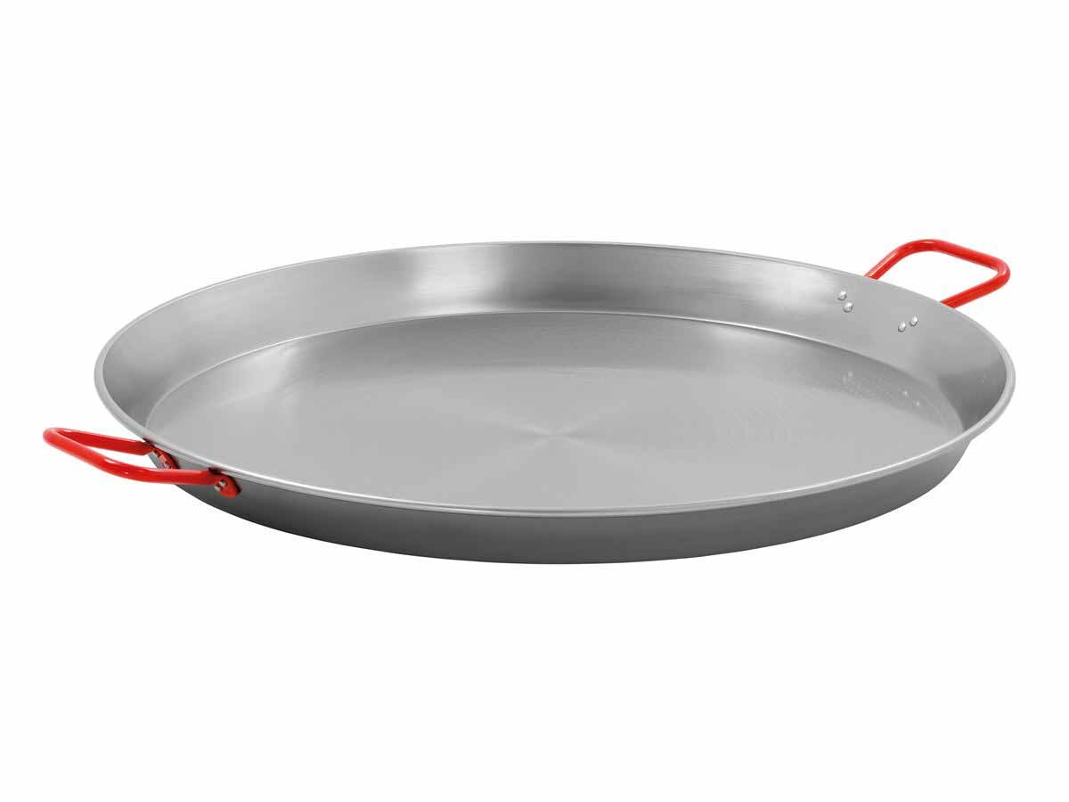 Die Bartscher Paella-Pfanne STP800 ist ideal für die Zubereitung einer Vielzahl von Gerichten, von Paella bis zu Bratkartoffeln. Mit einem Durchmesser von 800 mm und einer robusten, polierten Stahloberfläche ist diese Pfanne für anspruchsvolle Kücheneinsätze ausgelegt. Sie verfügt über strukturierte, hitzebeständige Griffe und bietet durch den hohen Rand zusätzliche Sicherheit beim Kochen.