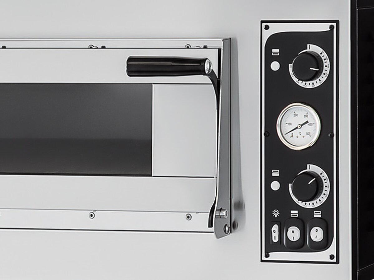 - Kapazität: 2 x 9 Pizzen Ø35 cm oder 2 x 5 EN-Bleche (600 x 400 mm)