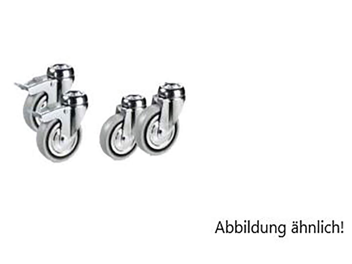 - 2 Rollen mit Bremse, 2 Rollen ohne Bremse