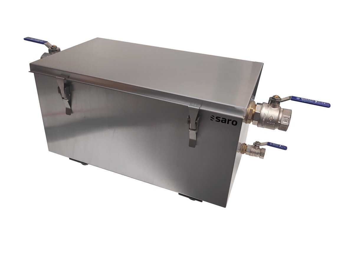 Der Saro Fettabscheider FA80 ist die ideale Lösung für professionelle Küchen, um Fette und Öle effizient vom Wasser zu trennen. Mit einer Kapazität von 80 Litern verhindert er effektiv Ablagerungen und Verstopfungen in den Abwasserleitungen.