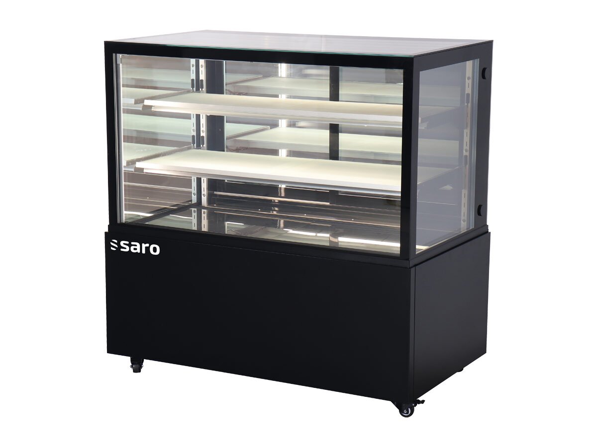 Die Saro Kuchenvitrine MARION in elegantem Schwarz bietet eine optimale Präsentationsfläche für Ihre Kuchen und Desserts. Mit einem Bruttoinhalt von 410 Litern und moderner Umluftkühlung sorgt sie für eine gleichmäßige Temperaturverteilung.