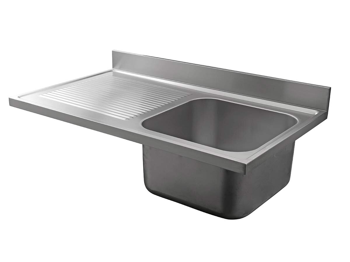 Diese hochwertige Spülabdeckung aus Edelstahl bietet eine langlebige und leicht zu reinigende Oberfläche. Das rechts platzierte Becken ermöglicht eine flexible Nutzung in verschiedenen Küchenlayouts. Die 100 mm Aufkantung sorgt dafür, dass keine Flüssigkeiten hinter die Arbeitsplatte gelangen.