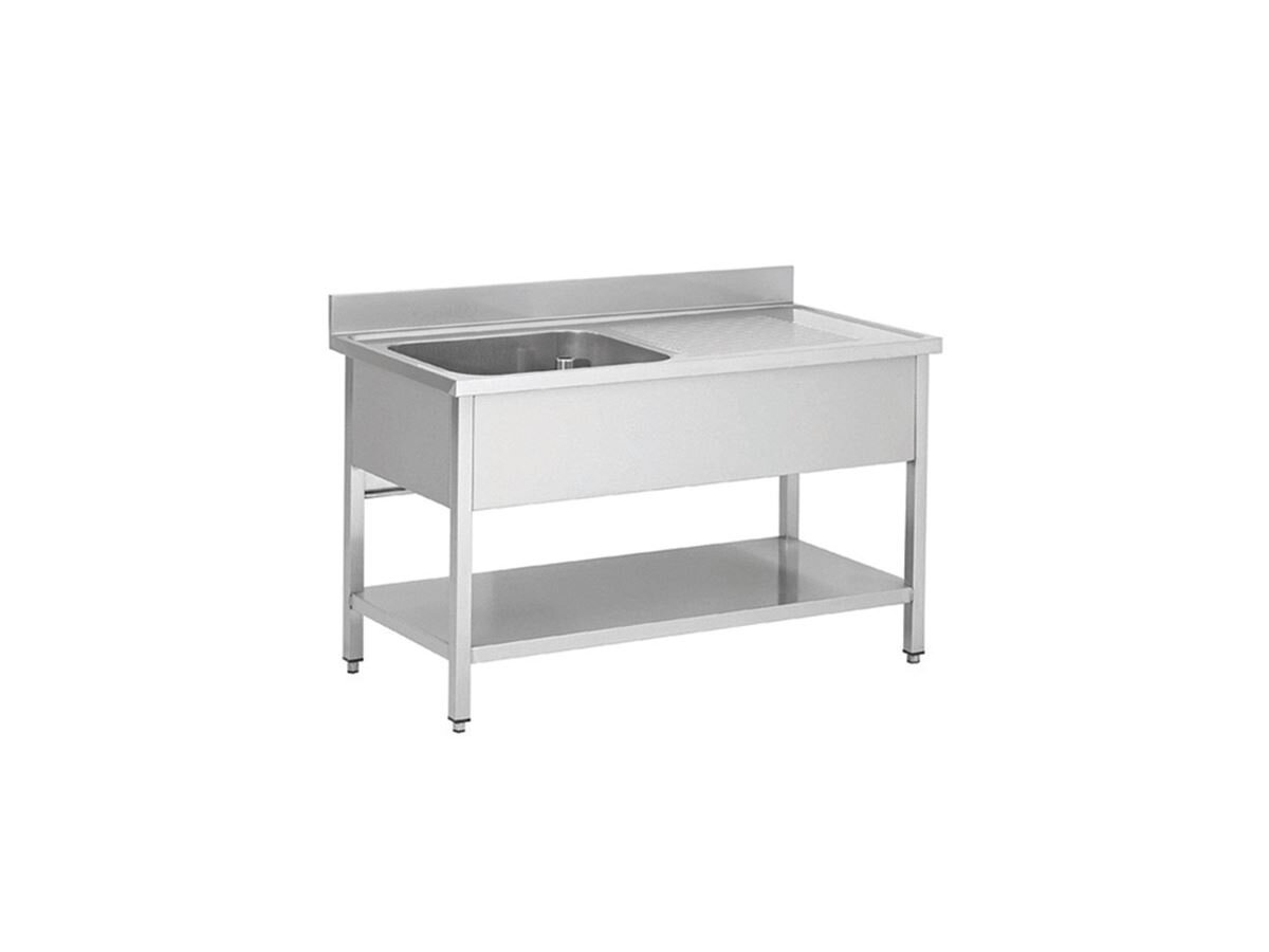 Spültisch , Becken u. Abstellfläche AISI304, Füße u. Zwischenboden aus Edelstahl, BTH 1400 x 700 x 850 mm