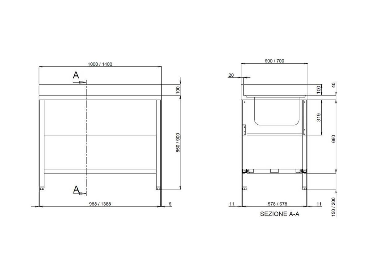 Entdecken Sie die vaiotec TOPLINE 700 Edelstahl Spültische mit großzügigen Becken, Abtropffläche und idealem Arbeitskomfort für Ihre Profi-Küche! Robust verschraubt, mit abgerundeten Ecken und einer Arbeitsplatte aus hochwertigem AISI 304, bietet er erstklassige Verarbeitung und Langlebigkeit. Mit 100 mm Aufkantung, höhenverstellbaren Füßen und einem stabilen Unterbau - die optimale Lösung für effizientes Arbeiten!