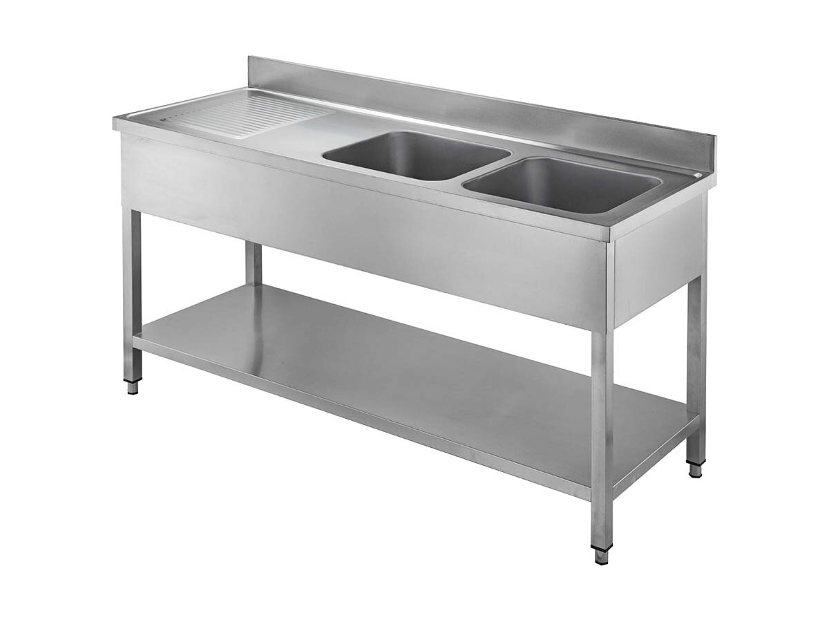 Robuster vaiotec TOPLINE 700 Spültisch mit 2 Becken rechts und Abtropffläche in Breite 2000 mm