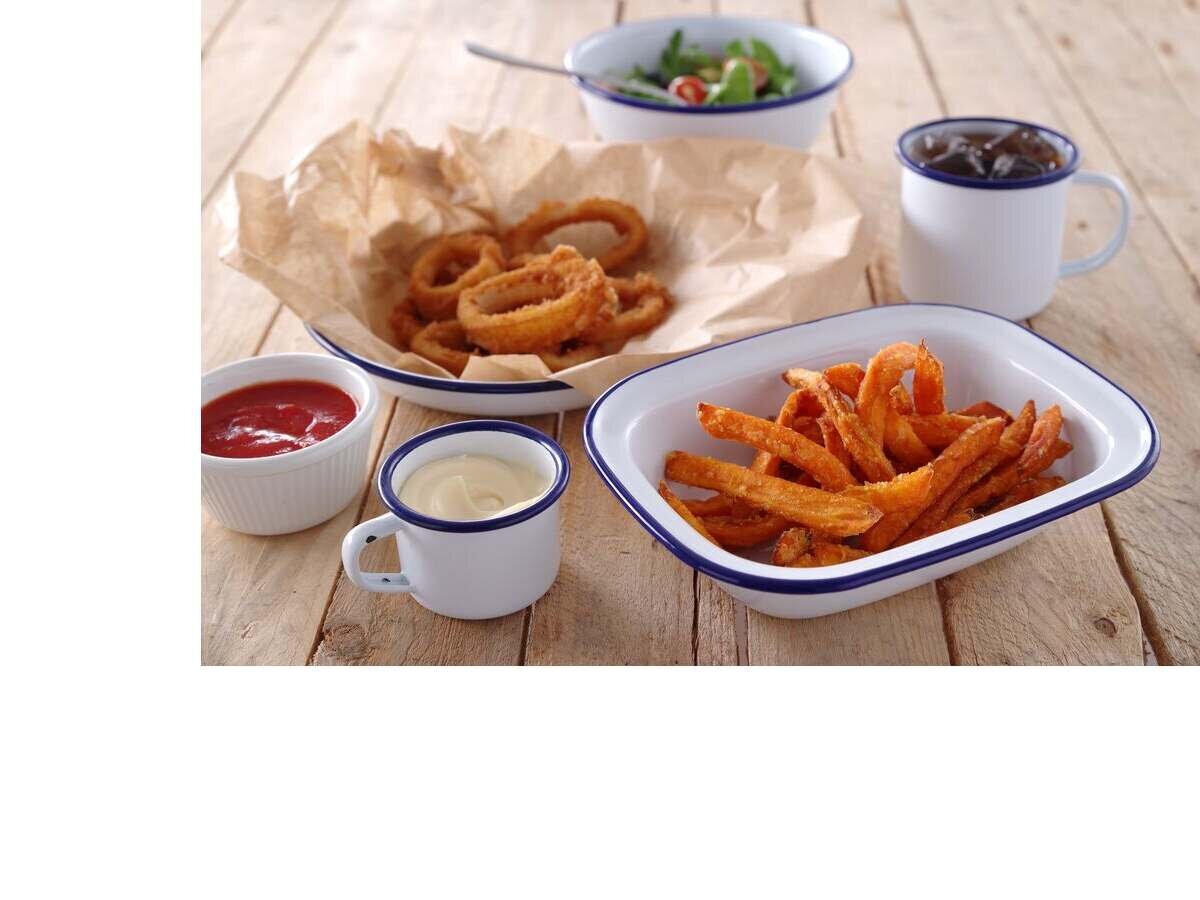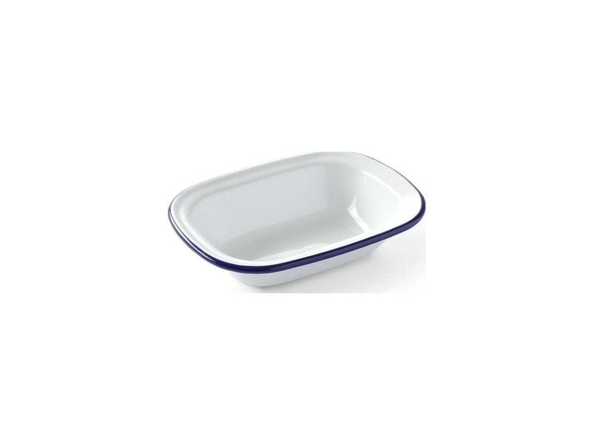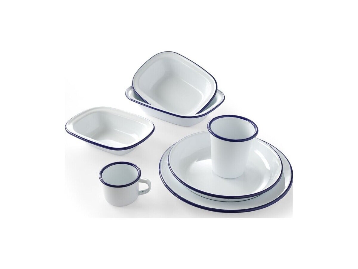 - Weißer emaillierter Stahl mit einem schönen blauen Rand
