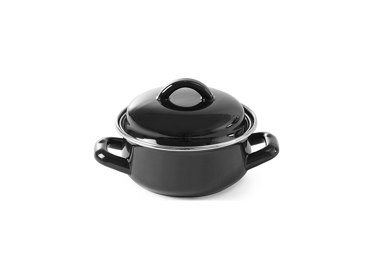 Suppentöpfchen, 0,65 Liter, Emailliert, mit niedrigem Deckel, schwarz