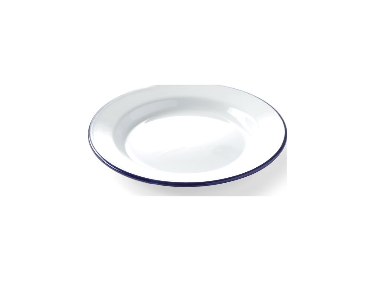 - Weißer emaillierter Stahl mit einem schönen blauen Rand