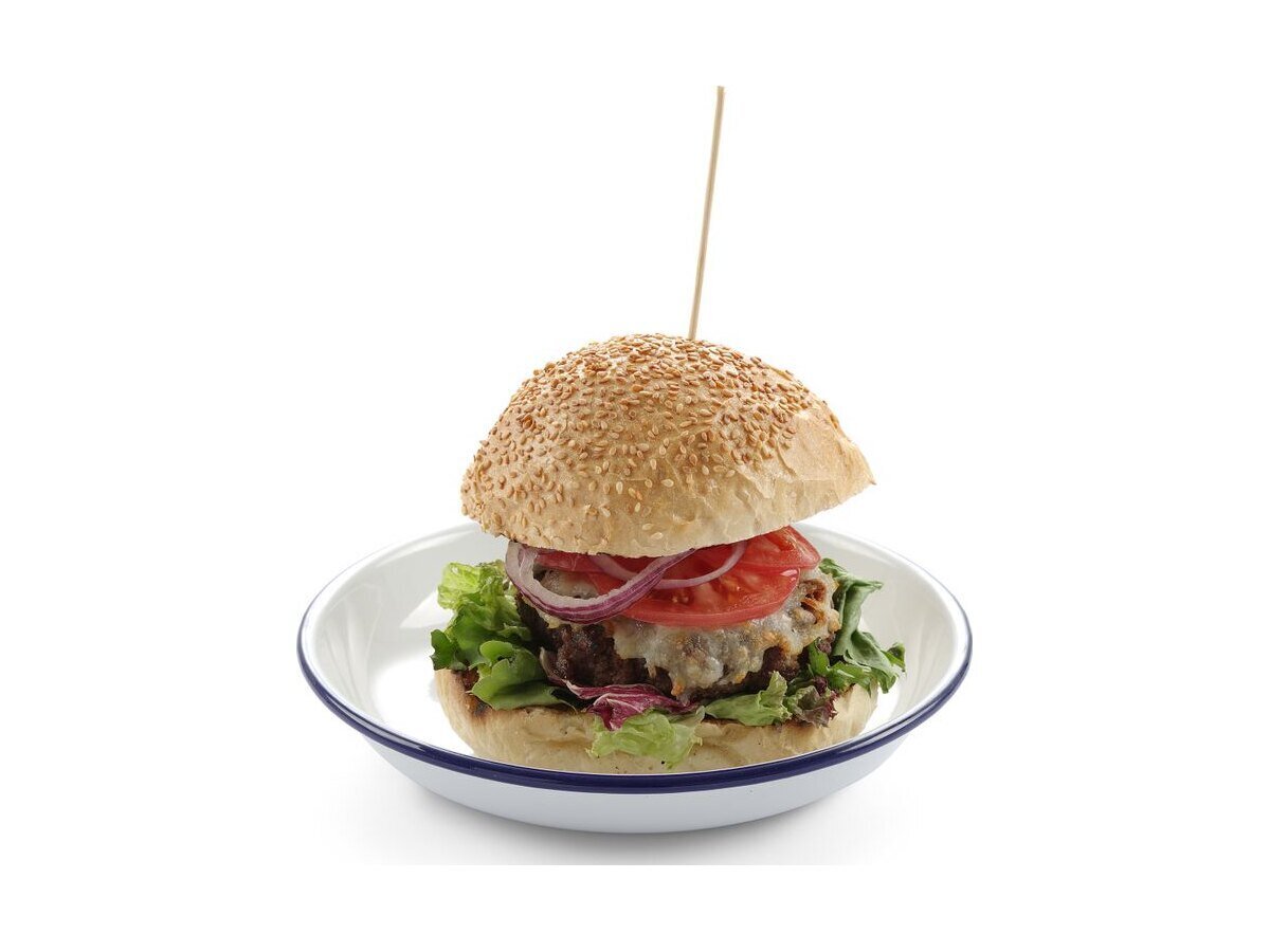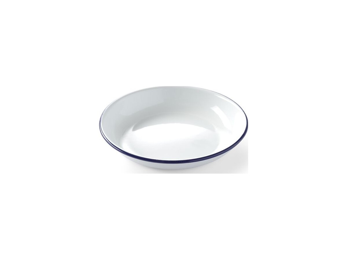 - Weißer emaillierter Stahl mit einem schönen blauen Rand