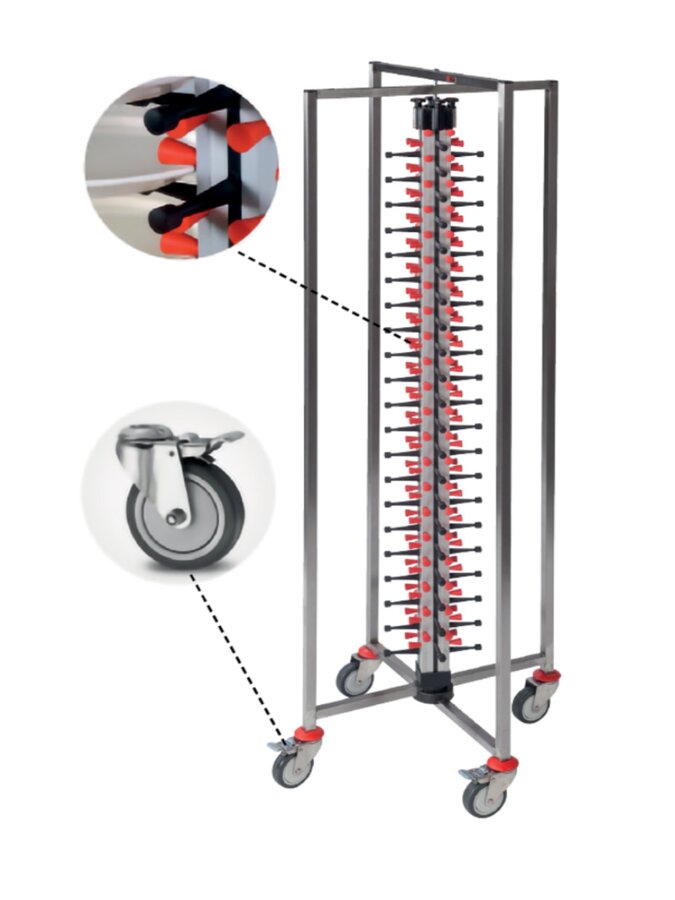 Optimieren Sie Ihren Küchenraum mit dem Saro Tellerstapelsystem Plate-Mate PM 84. Dieses klappbare System bietet Platz für bis zu 84 angerichtete Teller und ist ideal für Catering-Events. Die robuste Konstruktion aus Stahl und Aluminium garantiert Langlebigkeit und einfache Handhabung.