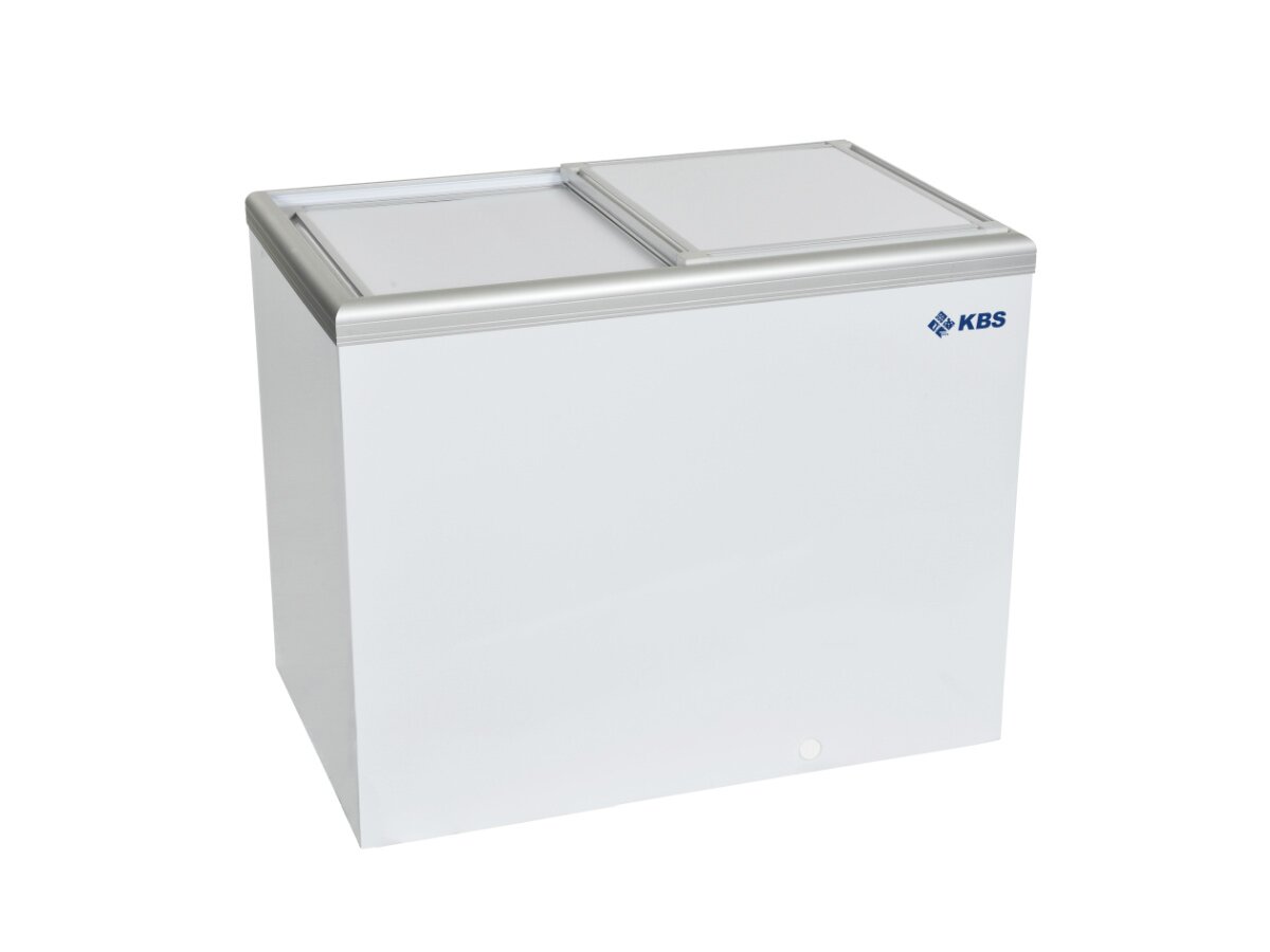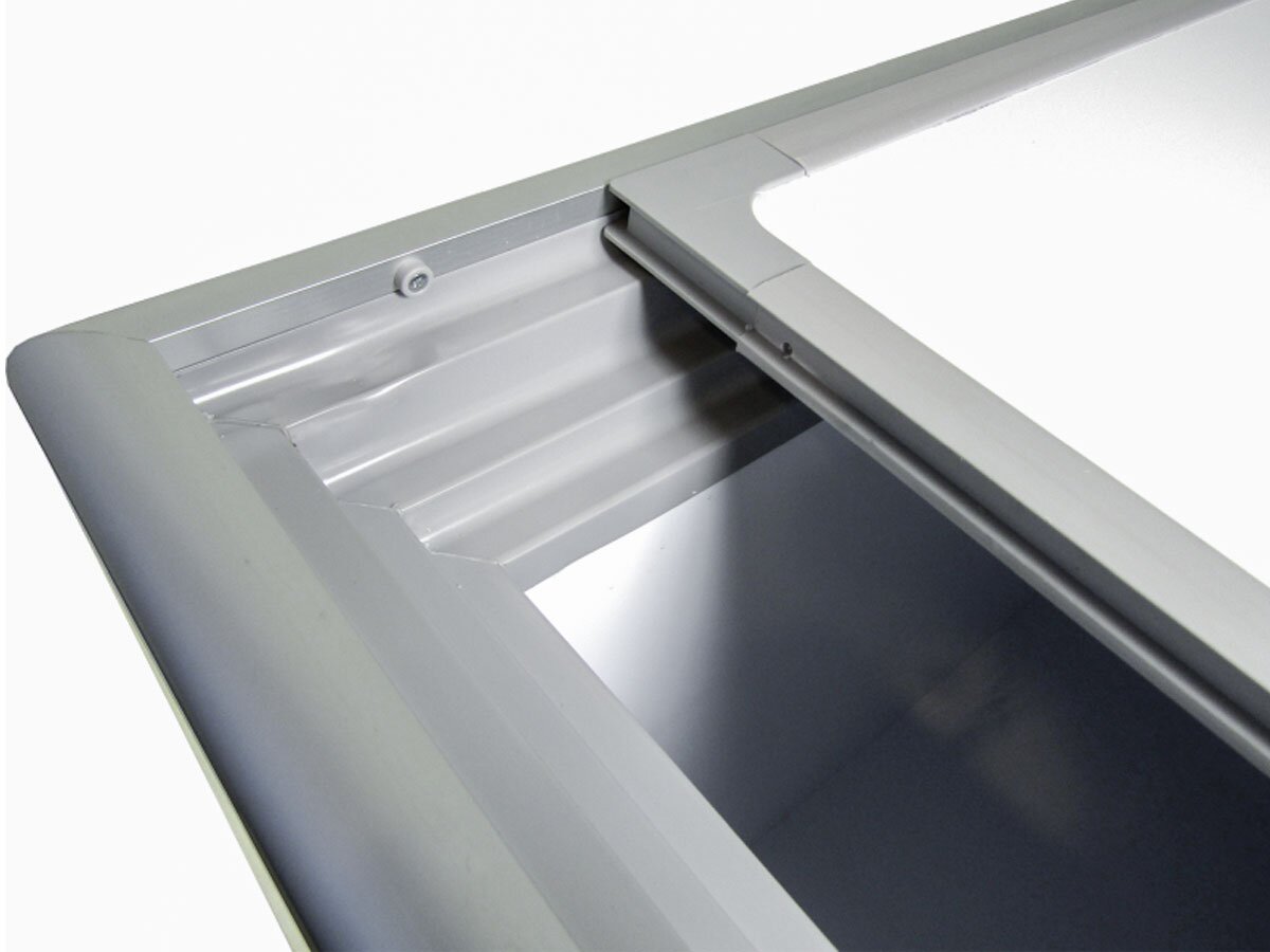 Gefriertruhe mit umlaufendem Aluminiumrahmen und geschäumten Schiebedeckeln