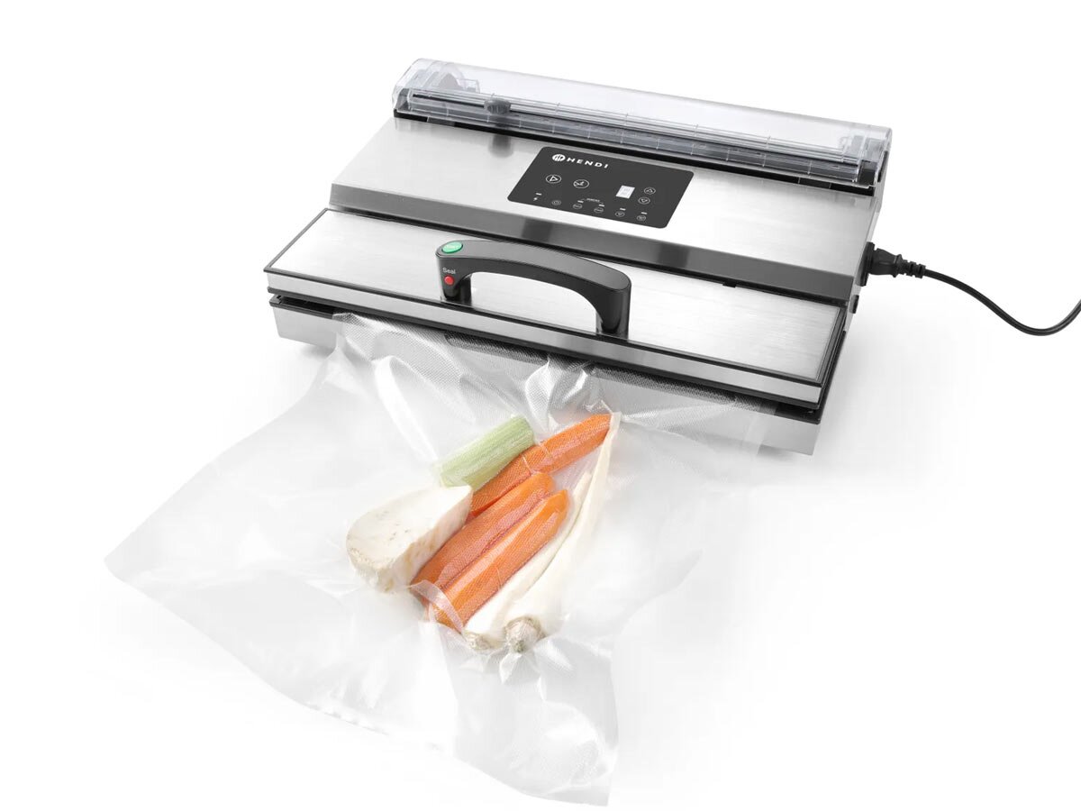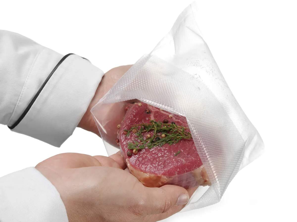 Die geprägten Hendi Vakuumbeutel mit 250 × 350 mm Abmessung eignen sich optimal für die professionelle Vakuumverpackung von Lebensmitteln. Die strukturierte Oberfläche erleichtert den Luftabzug beim Vakuumieren, besonders bei Geräten ohne Kammertechnik. Die 2-lagige Beutelstruktur besteht aus 60?µm lebensmittelechtem Polyethylen innen und 15?µm Polyamid außen, das zusätzlich UV-beständig ist. Mit einer Gesamtdicke von 75?µm bieten die Beutel zuverlässige Dichtigkeit, Produktschutz und Temperaturbeständigkeit bis 100?°C – ideal für Lagerung, Transport oder schonende Erwärmung.