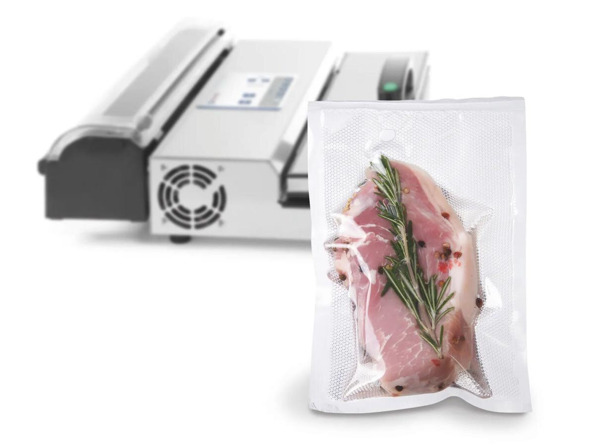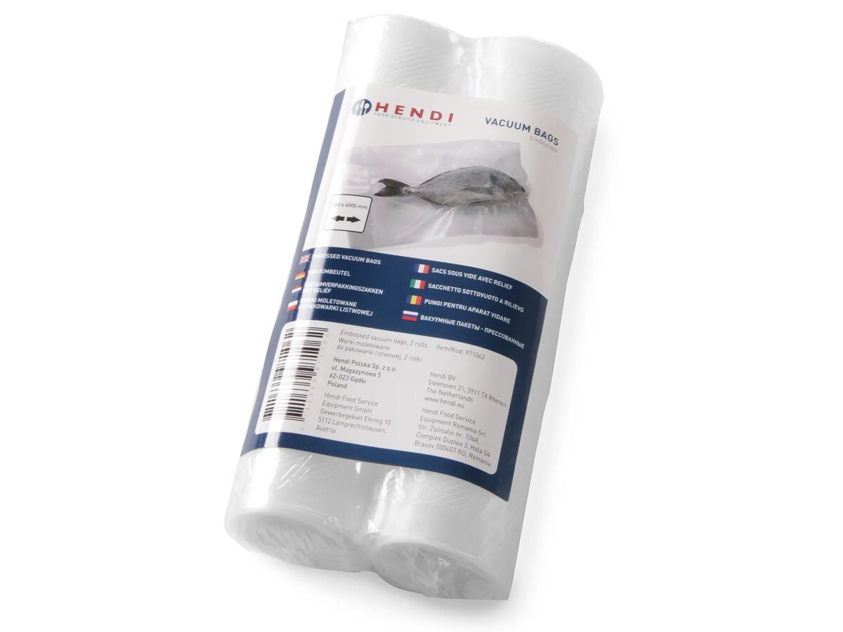 Die geprägte Hendi Vakuumbeutel-Rolle mit 200 × 6000 mm ist ideal für flexible Längenanpassung bei der Vakuumverpackung. Dank der 2-lagigen Struktur – innen 60 µm lebensmittelechtes Polyethylen, außen 15 µm UV-beständiges Polyamid – ist die Folie robust, lebensmittelecht und besonders reißfest. Die Prägung verbessert den Luftstrom beim Vakuumieren deutlich und ist für Kammer- wie auch Außen-Vakuumiergeräte geeignet. Die Beutelrolle ist temperaturbeständig von -20?°C bis +100?°C und damit vielseitig einsetzbar für Lagerung, Kühlung oder schonende Wärmebehandlung.