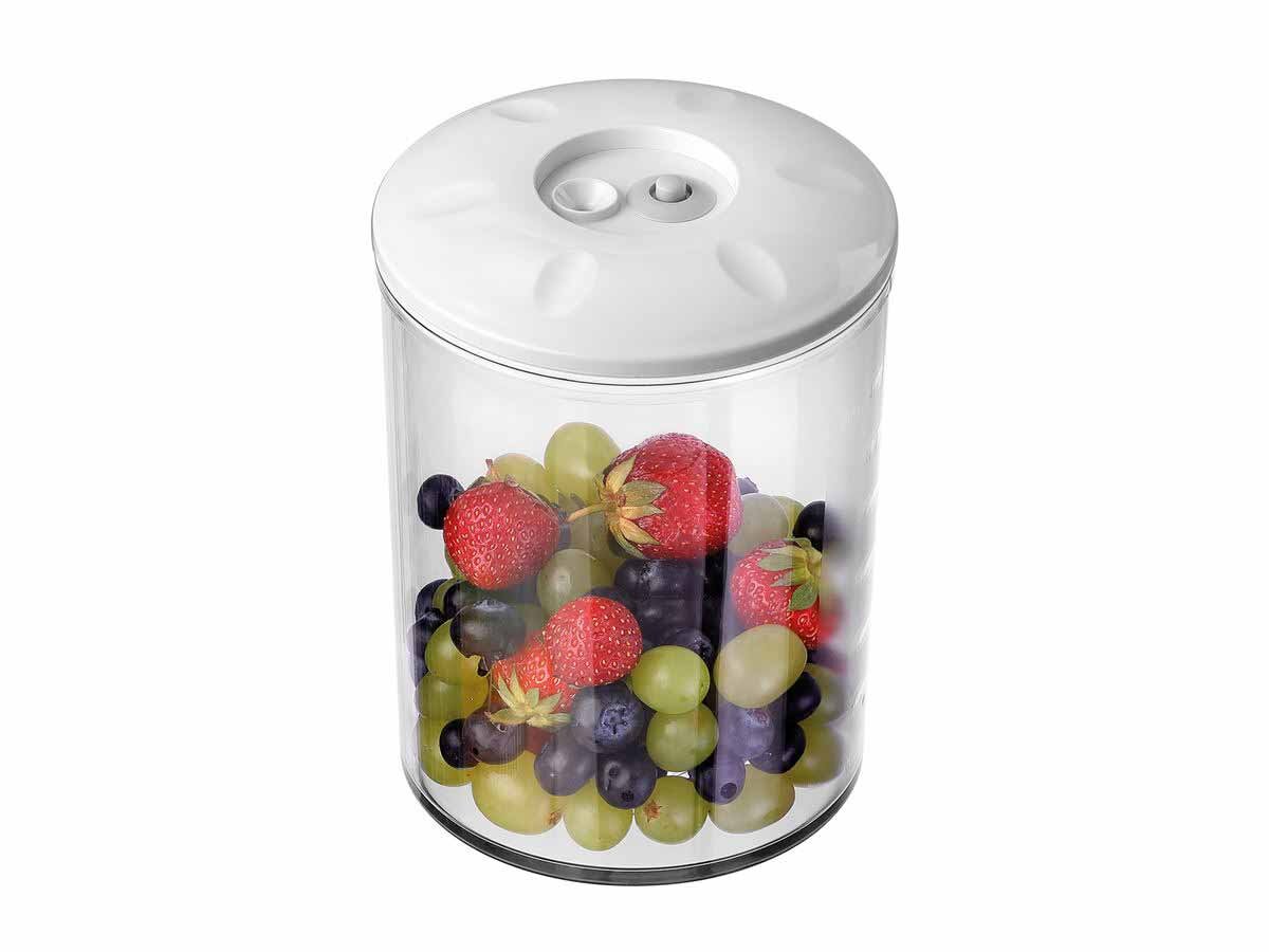 Der Bartscher Vakuumierbehälter ist die ideale Lösung für empfindliche Lebensmittel wie Beeren, Tomaten oder flüssige Speisen. Mit einem Fassungsvermögen von 1,5 Litern bietet er ausreichend Platz für vorbereitete Mahlzeiten, Soßen oder Suppen, die schonend konserviert werden sollen. Dank seines transparenten Designs behalten Sie stets den Überblick über Ihre Vorräte. Der Behälter ist stapelbar, robust und lebensmittelecht – ideal für Küche, Gastronomie oder Vorratshaltung.- Vakuumierbehälter für empfindliche Lebensmittel & Speisen