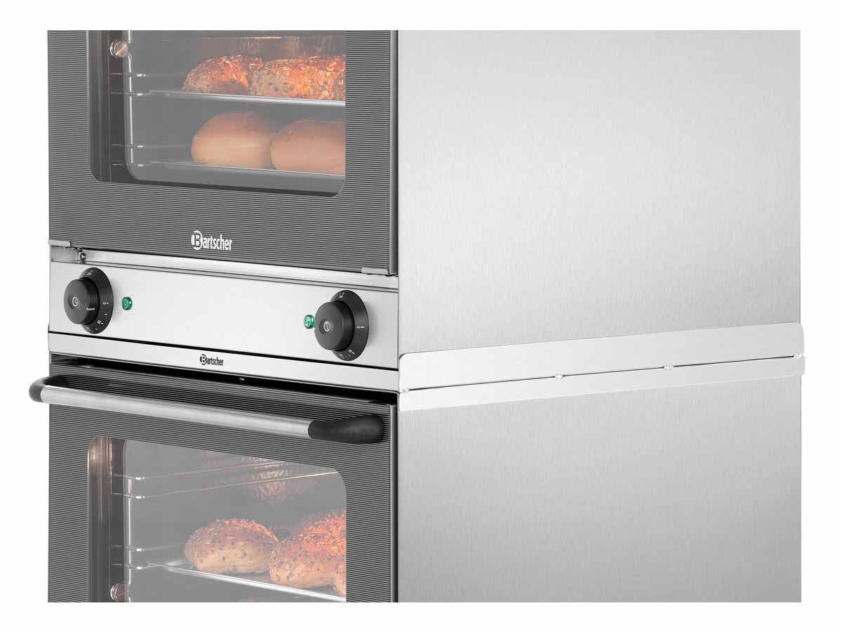 Platzsparend und praktisch – Der Verbindungsrahmen ermöglicht das sichere Stapeln von 2 Heißluftöfen AT90 oder AT120. Fest verschraubt ist kein Verrutschen möglich. So kann wertvoller Platz in der Küche, in Tankstellen, Kiosken oder Bäckereien eingespart werden.