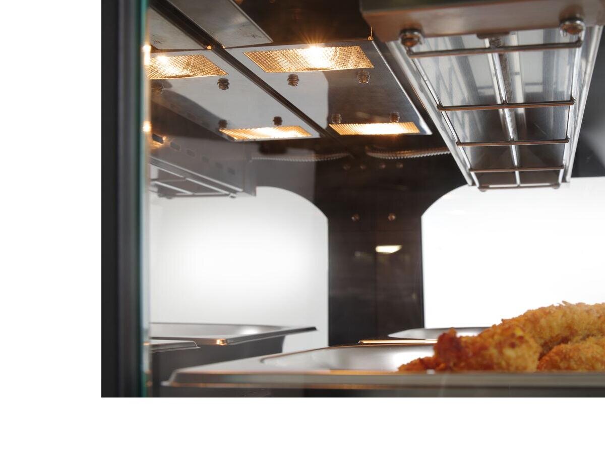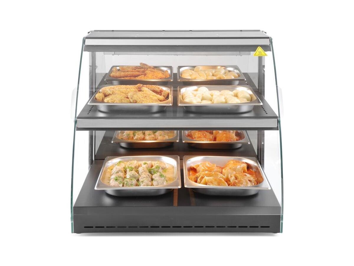 Warmhaltevitrine für 4 x GN 1/2 Behälter, mit 2 Regalböden