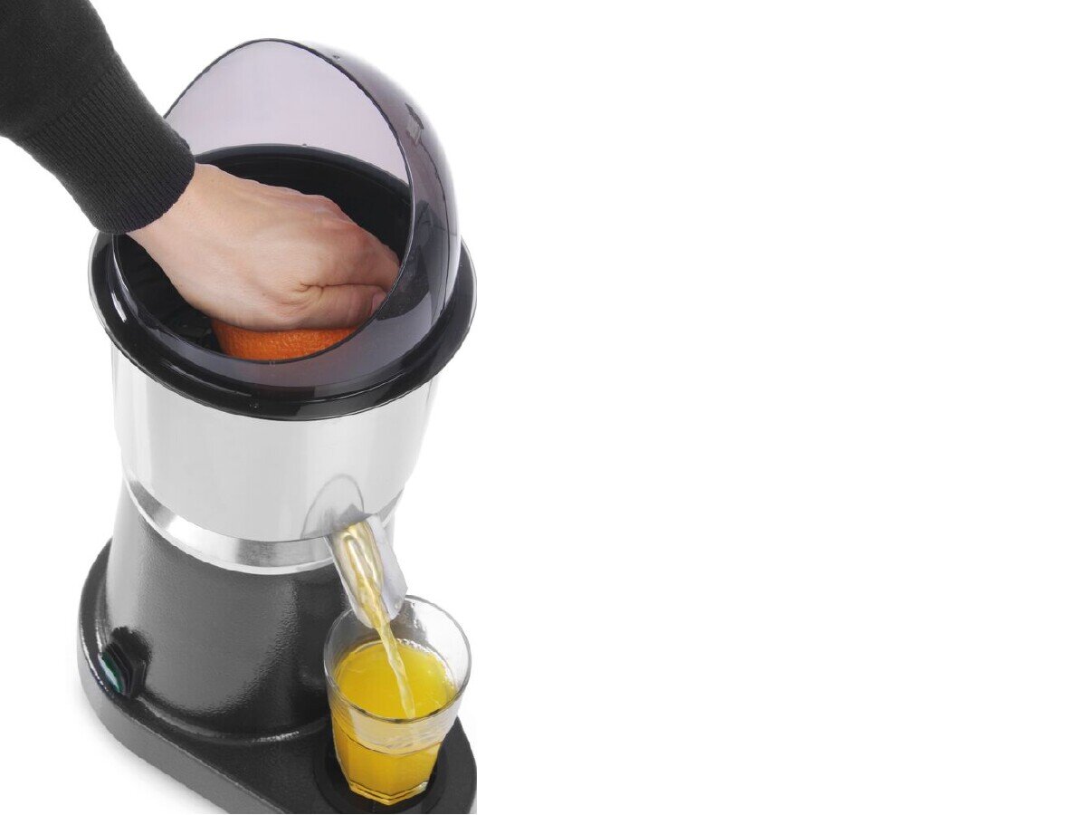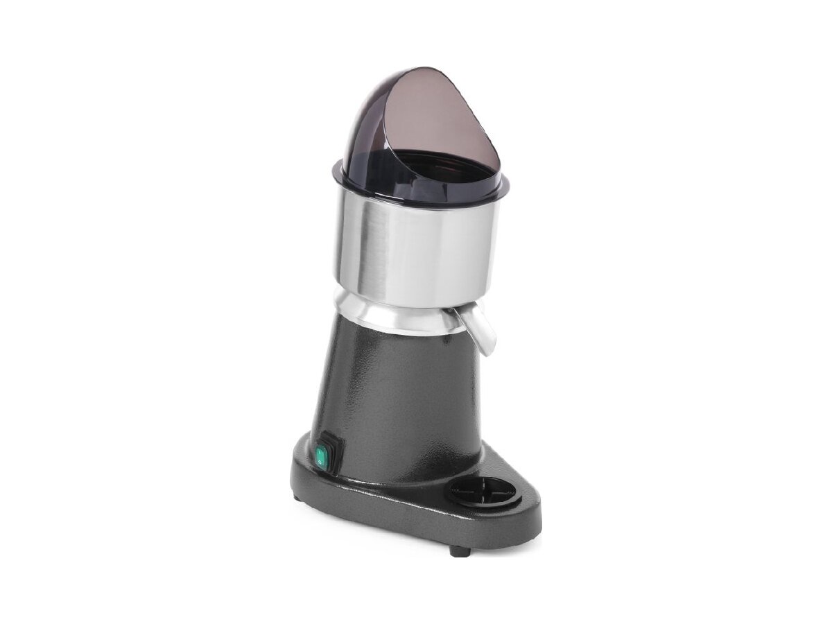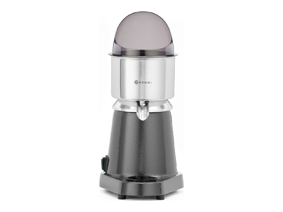 Die kompakte elektrische Zitruspresse von HENDI überzeugt mit hoher Drehzahl und durchdachtem Zubehör. Drei unterschiedliche Presskegel aus robustem ABS-Kunststoff ermöglichen die Verarbeitung von kleinen bis großen Zitrusfrüchten – ideal für Bars, Frühstücksbuffets oder Küchen mit hohem Saftbedarf. Das Edelstahlgehäuse sorgt für Langlebigkeit, während die abnehmbaren Teile spülmaschinenfest sind – für mehr Hygiene im Alltag.