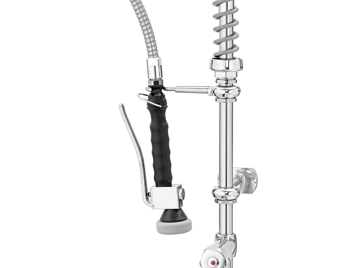 Unverzichtbar in jeder Spülküche – Zweigriffmischer mit praktischer Einlochbohrung und einer Durchflussmenge von bis zu 26 Litern.- Durchfluss bei 3 bar: Auslaufmenge: 16 L / Min., Strahlregler: 26 L / Min.