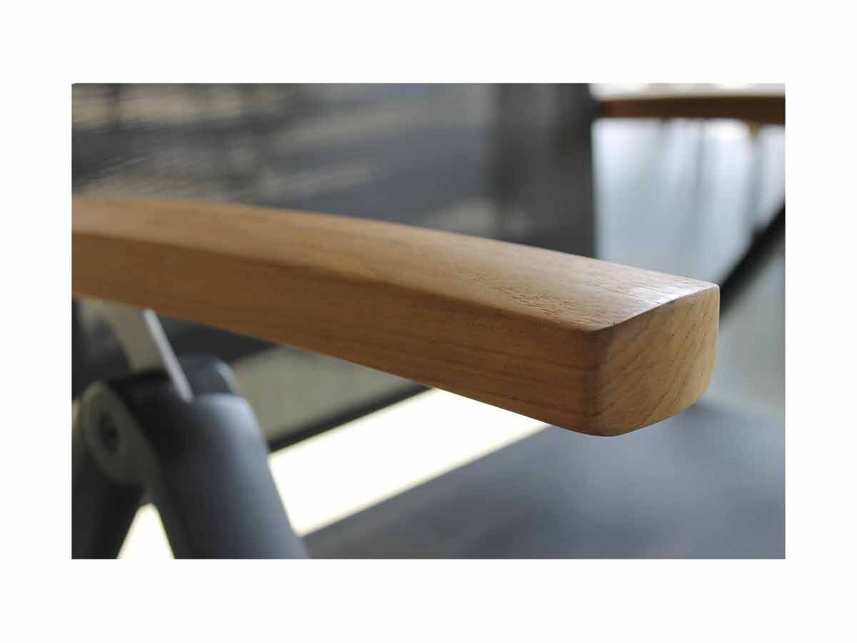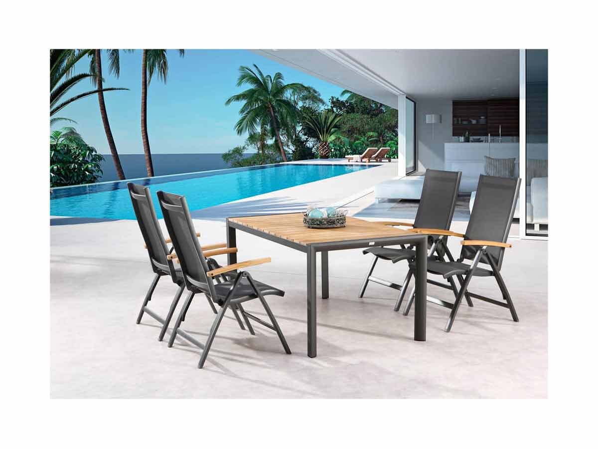 Der BEST Cavalese Klappstuhl bietet Komfort und Funktionalität in einem stilvollen Design. Sein robustes Aluminiumgestell ist korrosions- und witterungsbeständig, während die ergonomisch geformte Sitz- und Rückenlehne mit Textilene-Bespannung für hohen Sitzkomfort sorgt. Die breiten Armlehnen aus edlem Teakholz verleihen dem Stuhl zusätzliche Eleganz. Die mehrfach verstellbare Rückenlehne und die Klappfunktion machen den Cavalese Klappstuhl zu einer idealen Lösung für Terrasse, Garten oder Balkon.