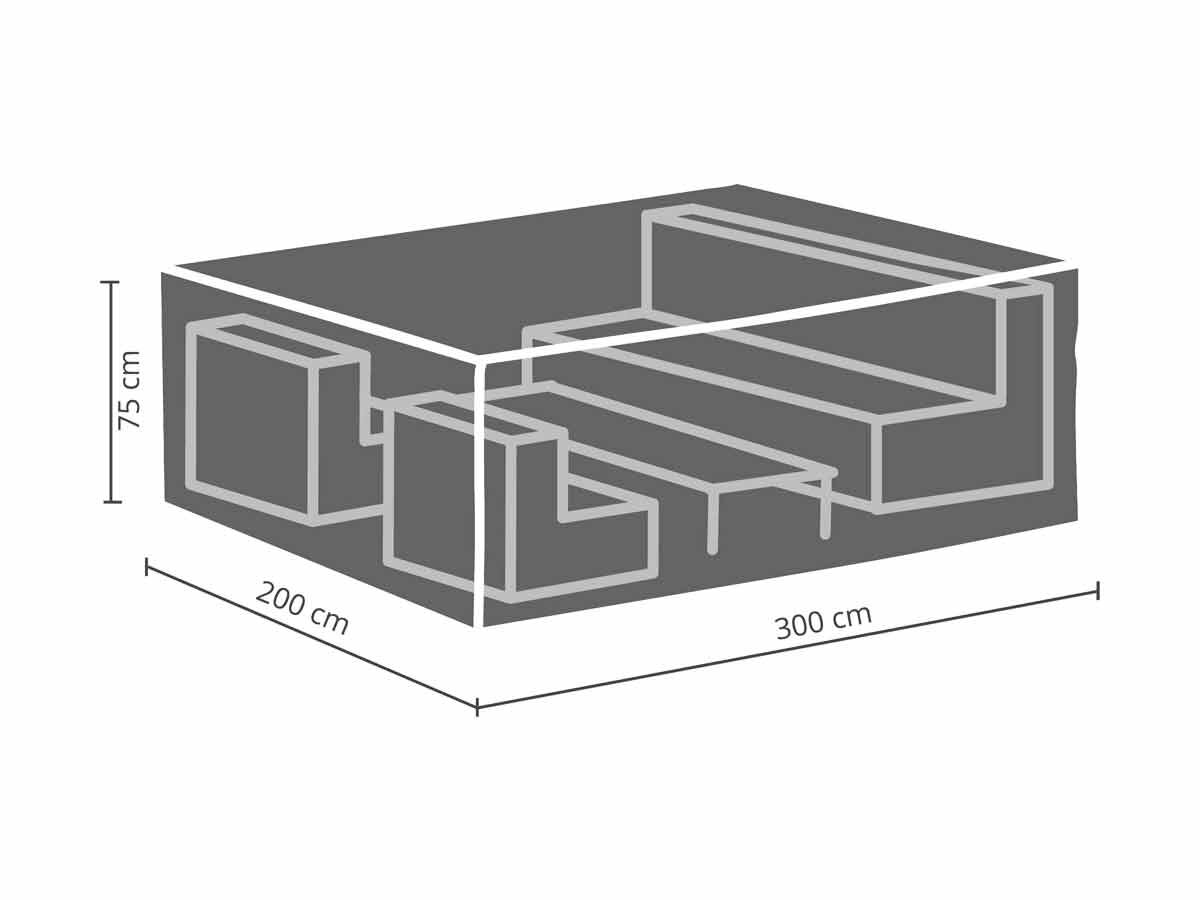 Die BEST Schutzhülle in Hellgrau ist speziell für große Loungesets entwickelt und bietet dank ihrer großzügigen Maße von 300x200x75 cm zuverlässigen Schutz vor Witterungseinflüssen. Gefertigt aus 100% Polyester mit wetterfester Beschichtung, schützt sie Ihre Gartenmöbel vor Regen, UV-Strahlen und Staub. Die leichte und handliche Hülle kommt mit einer praktischen Aufbewahrungstasche, die den Transport und die Lagerung vereinfacht.