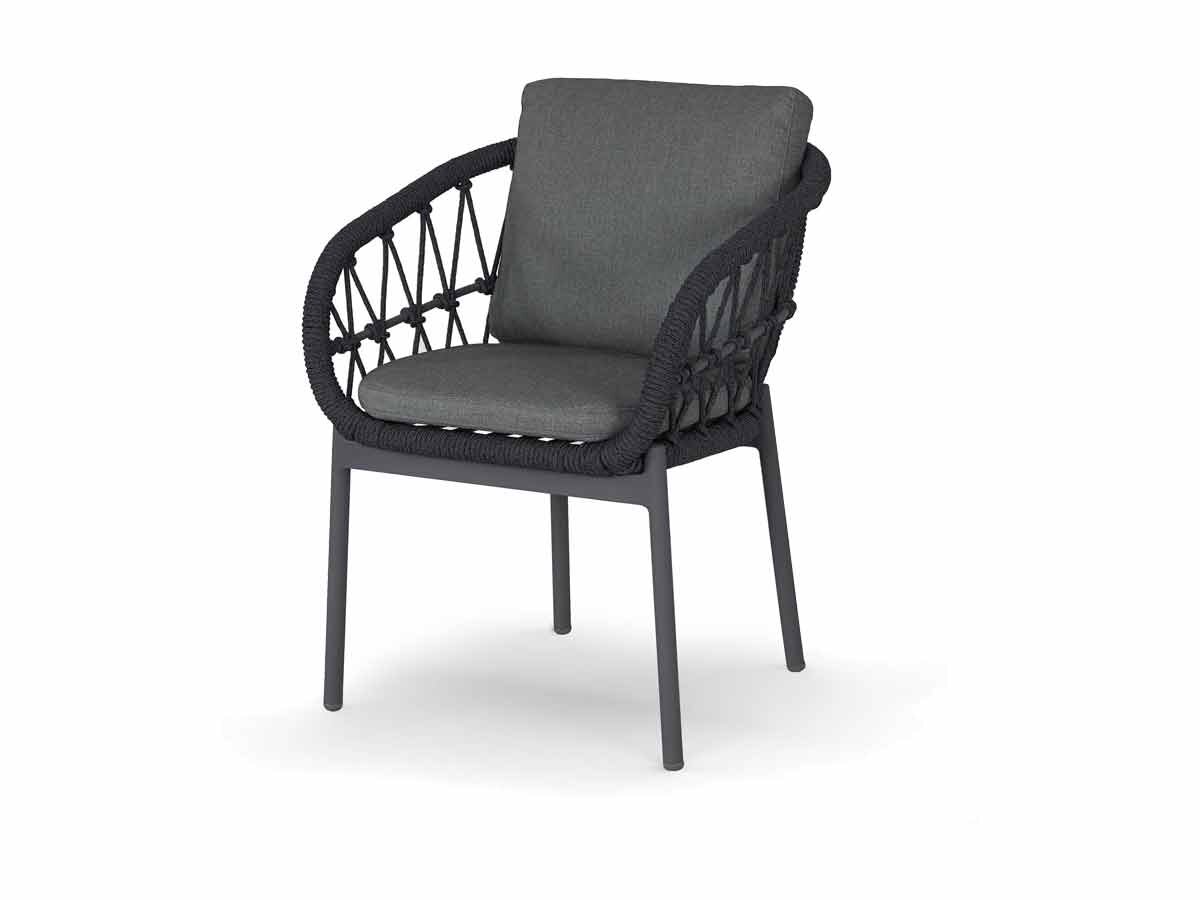 Outdoor Dining Sessel – BEST Tropea mit Kissen und Seilgeflecht, Farbe Anthrazit