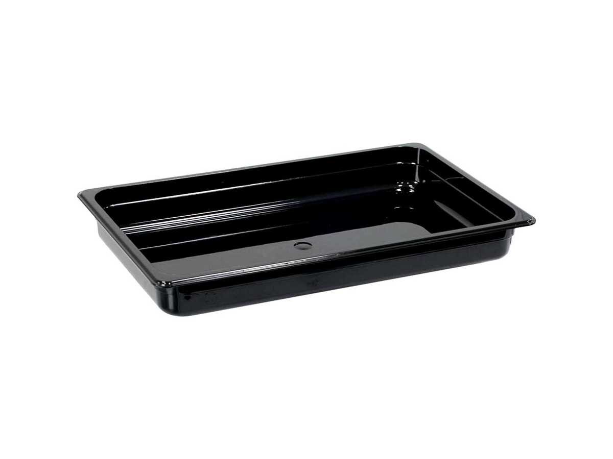Der schwarze GN 1/1 Behälter von Stalgast mit 65 mm Tiefe besteht aus hochwertigem Polycarbonat. Er ist lebensmittelecht, geruchs- und geschmacksneutral sowie besonders robust und nahezu unzerbrechlich. Der Temperaturbereich von -40 °C bis +99 °C macht ihn ideal für die sichere Lagerung und Kühlung von Speisen. Der Behälter ist spülmaschinengeeignet, jedoch nicht für den Einsatz in Bain-Maries, Chafing Dishes oder Kombidämpfern vorgesehen.