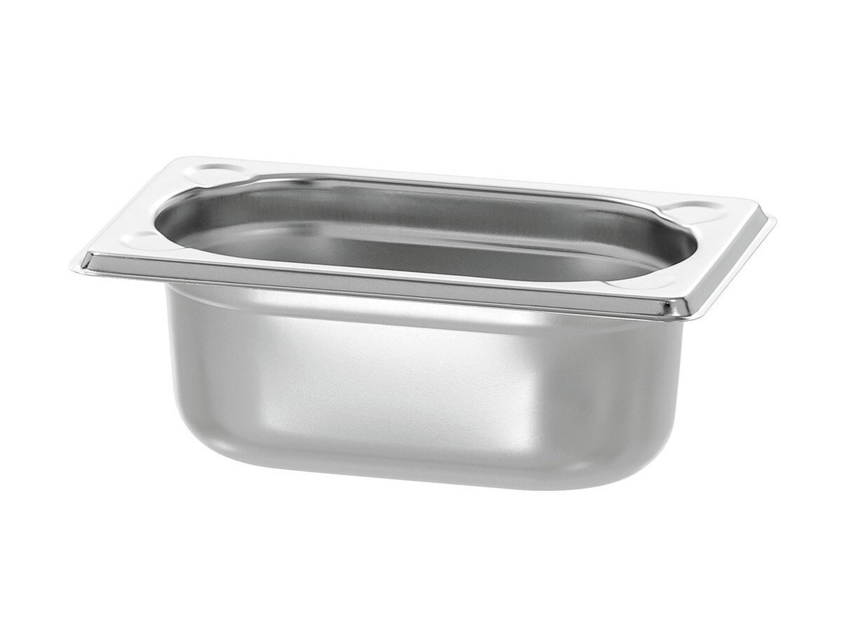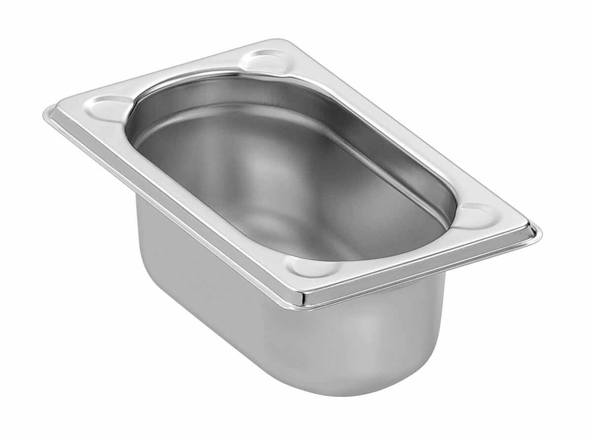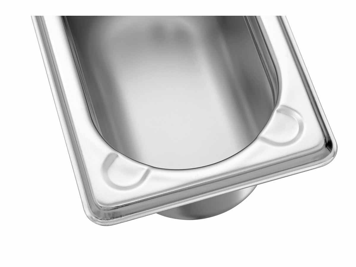 Der Bartscher GN-Behälter 1/9 mit einer Tiefe von 65 mm und einem Fassungsvermögen von 0,6 Litern ist aus hochwertigem Chromnickelstahl gefertigt. Die seidenmatte Oberfläche sorgt für ein professionelles Erscheinungsbild und einfache Reinigung. Er erfüllt die EN 631 Norm und gehört zur bewährten Basic Line Serie von Bartscher. Der Behälter ist stapelbar, robust und bestens geeignet für professionelle Küchen.