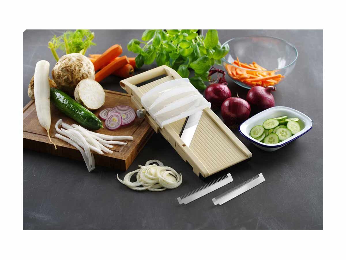 - Inklusive Fingerschutz/Gemüsehalter für sichere Handhabung