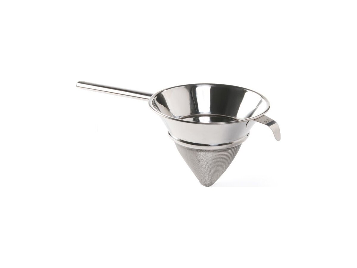 Das Hendi Spitzsieb ist ein unverzichtbares Küchenwerkzeug für die professionelle Gastronomie. Mit einem Durchmesser von 205 mm, einer Gesamtlänge von 460 mm und einer Höhe von 170 mm eignet es sich hervorragend zum Abseihen, Passieren und Klären von Suppen, Saucen oder Brühen. Die feinmaschige Struktur filtert selbst kleine Partikel zuverlässig heraus, sodass eine besonders klare Flüssigkeit entsteht. Gefertigt aus robustem Edelstahl, ist das Spitzsieb langlebig, hygienisch und spülmaschinengeeignet.