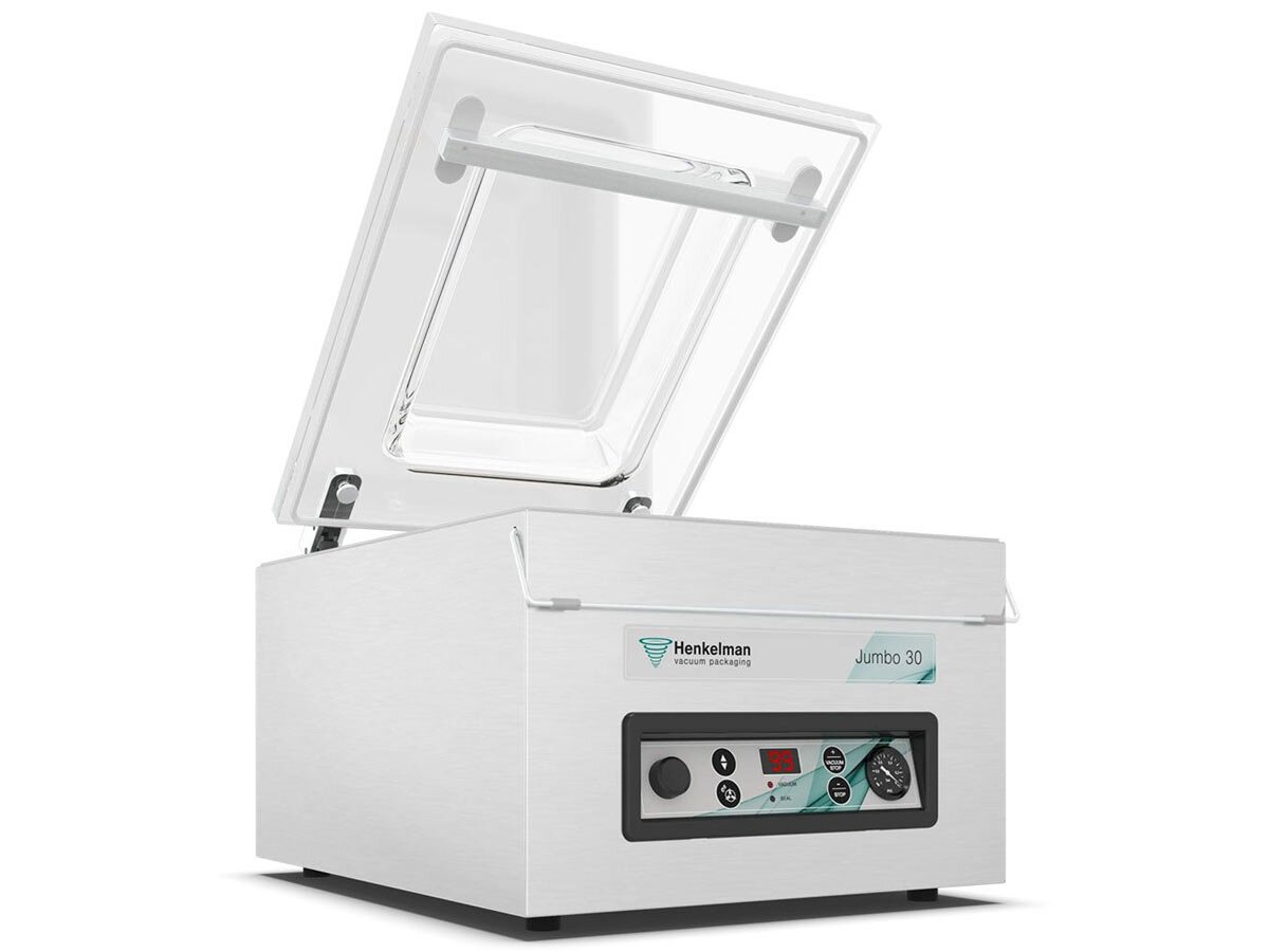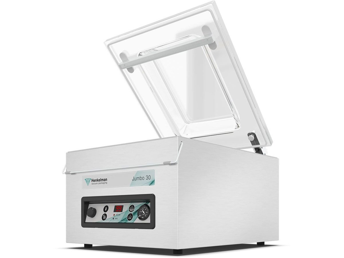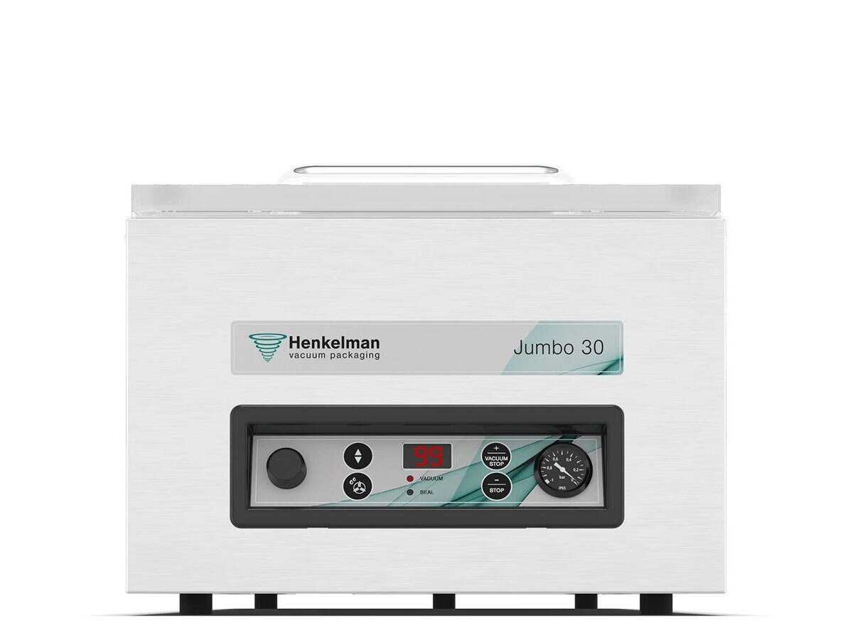 Das Henkelman Jumbo 30 Kammer-Vakuumiergerät überzeugt mit einer leistungsstarken Busch-Pumpe, robustem Edelstahlgehäuse und einfacher digitaler Steuerung. Mit Doppelnahtschweißung, wartungsfreundlicher Schweißleiste und zwei Einlegeplatten bietet es perfekte Ergebnisse und einfache Reinigung – ideal für professionelle Anwendungen.