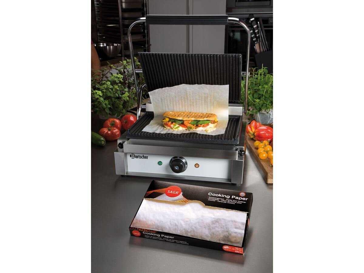 Das Kochpergament ist ein vielseitig einsetzbares Trenn-, Koch-, Gar-, Brat- und Backpapier. Mit seiner Antihaftbeschichtung eignet es sich ebenfalls wunderbar für den Einsatz im Kontaktgrill – Das Grillgut erhält die ansprechenden Röststreifen, wird aber gleichzeitig geschützt.