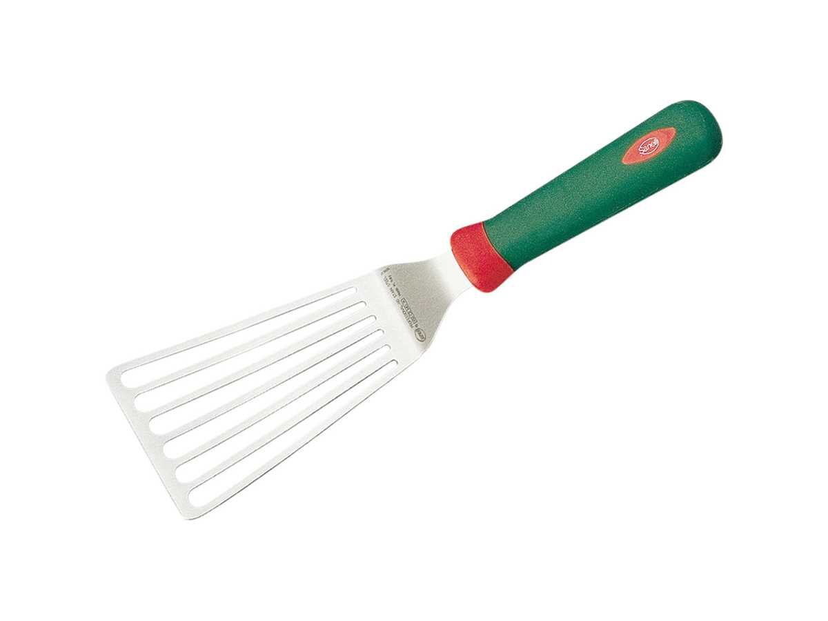 Gastronomie Sanelli Pfannenwender geschlitzt, ergonomischer Griff, Klingenlänge 15 cm, ergonomischer Griff aus zwei Schichten: hart (rot) und weich (grün)