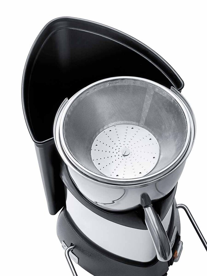 - Feines Edelstahl-Sieb (0,5 mm) für hohe Saftausbeute