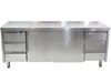 Edelstahl Arbeitsschrank PREMIUM, mit Schiebetüren und Schubladen links und rechts, mit Aufkantung, Bautiefe 60 cm, in verschiedenen Breiten