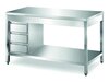 Edelstahl Arbeitstisch PREMIUM, Bautiefe 70 cm, mit 2 Grundböden, ohne Aufkantung, in verschiedenen Breiten