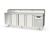 vaiotec TOPLINE 800 Pizzatisch 500, 3 Türen, Schubladenblock, für EN 60x40, graue Granitplatte, inkl. Kühlaufsatz für GN 1/4, BTH 2545 x 800 x 1473 mm
