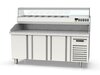 vaiotec TOPLINE 700 Pizzatisch 300 Plus, 3 Türen, graue Granitplatte, inkl. Kühlaufsatz für GN 1/4, Unterbaukühlung, BTH 1370 x 700 x 1583 mm