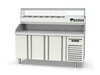 vaiotec TOPLINE 700 Pizzatisch 300, 3 Türen, graue Granitplatte, inkl. Kühlaufsatz für GN 1/4, Unterbaukühlung, BTH 1370 x 700 x 1503 mm