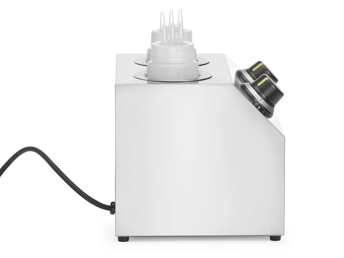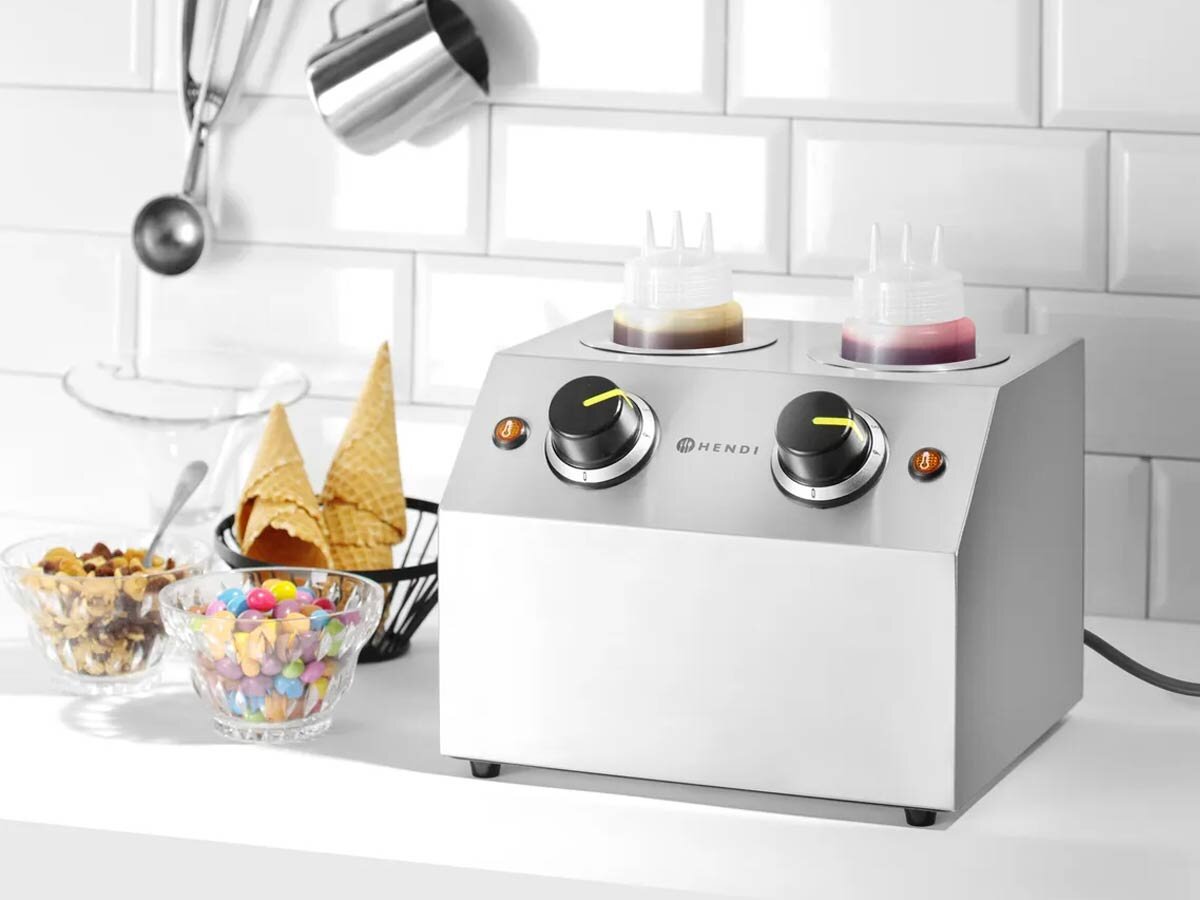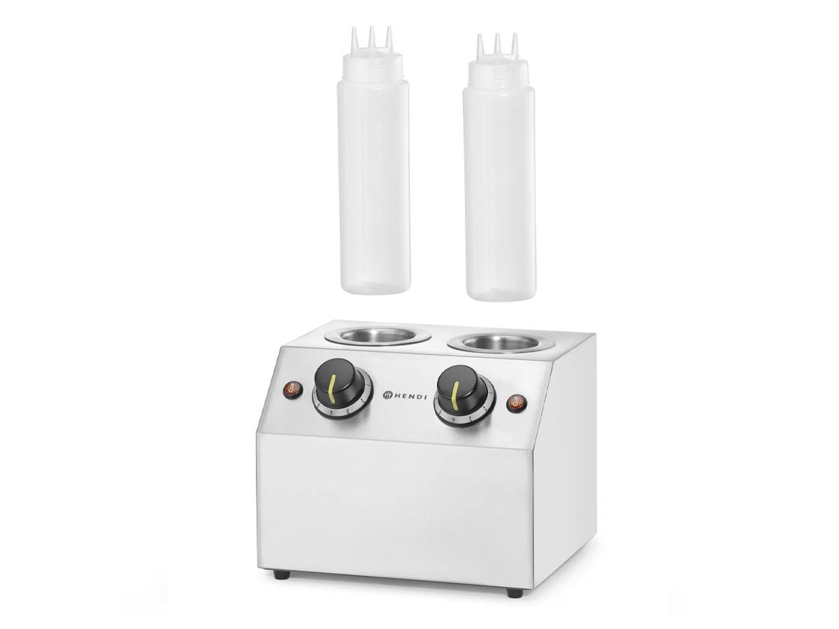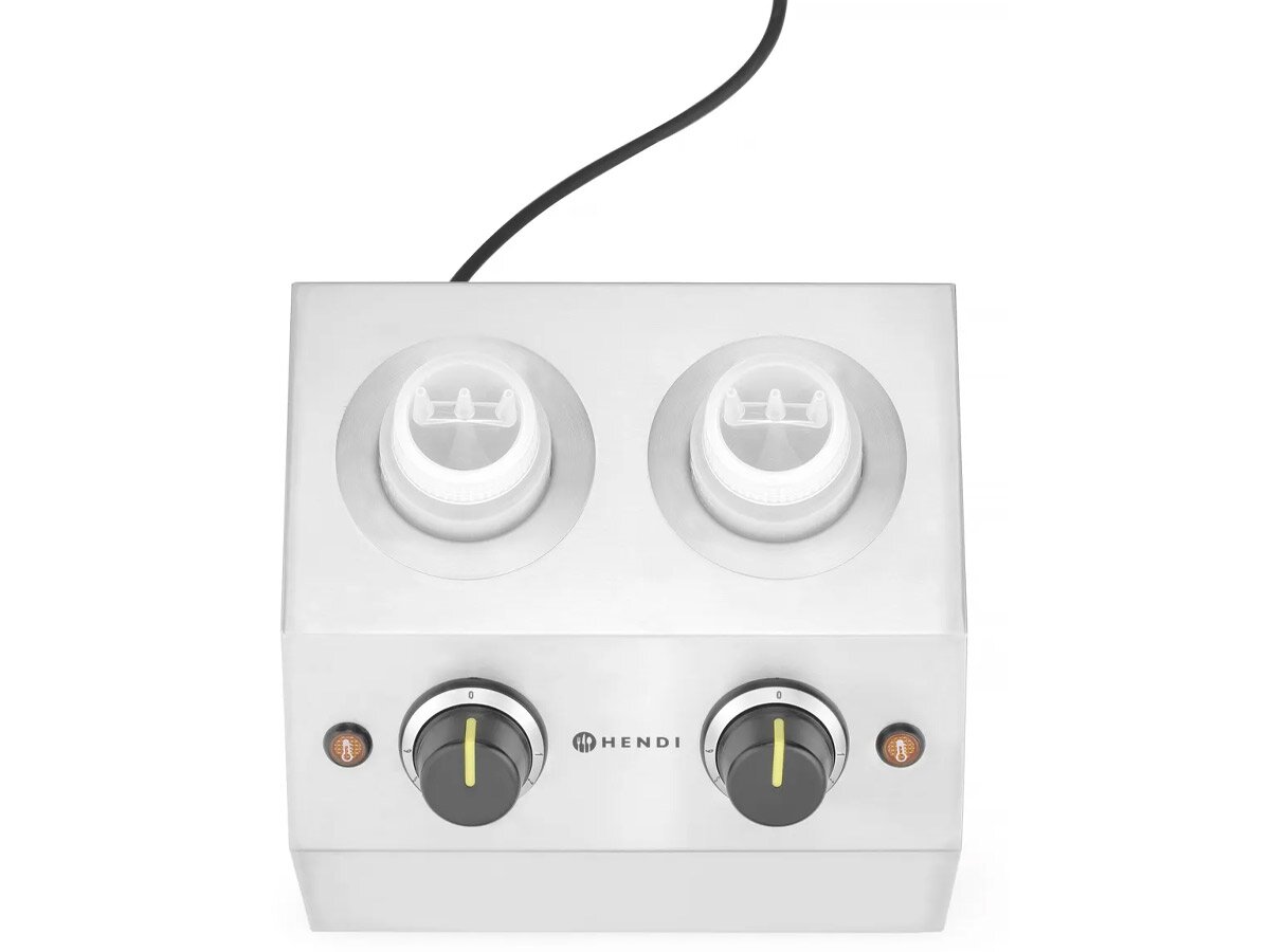 Der HENDI Saucenwärmer doppelt hält Saucen wie Schokoladensauce auf optimaler Temperatur. Robustes Edelstahlgehäuse, temperaturverstellbar und ideal für Desserts.