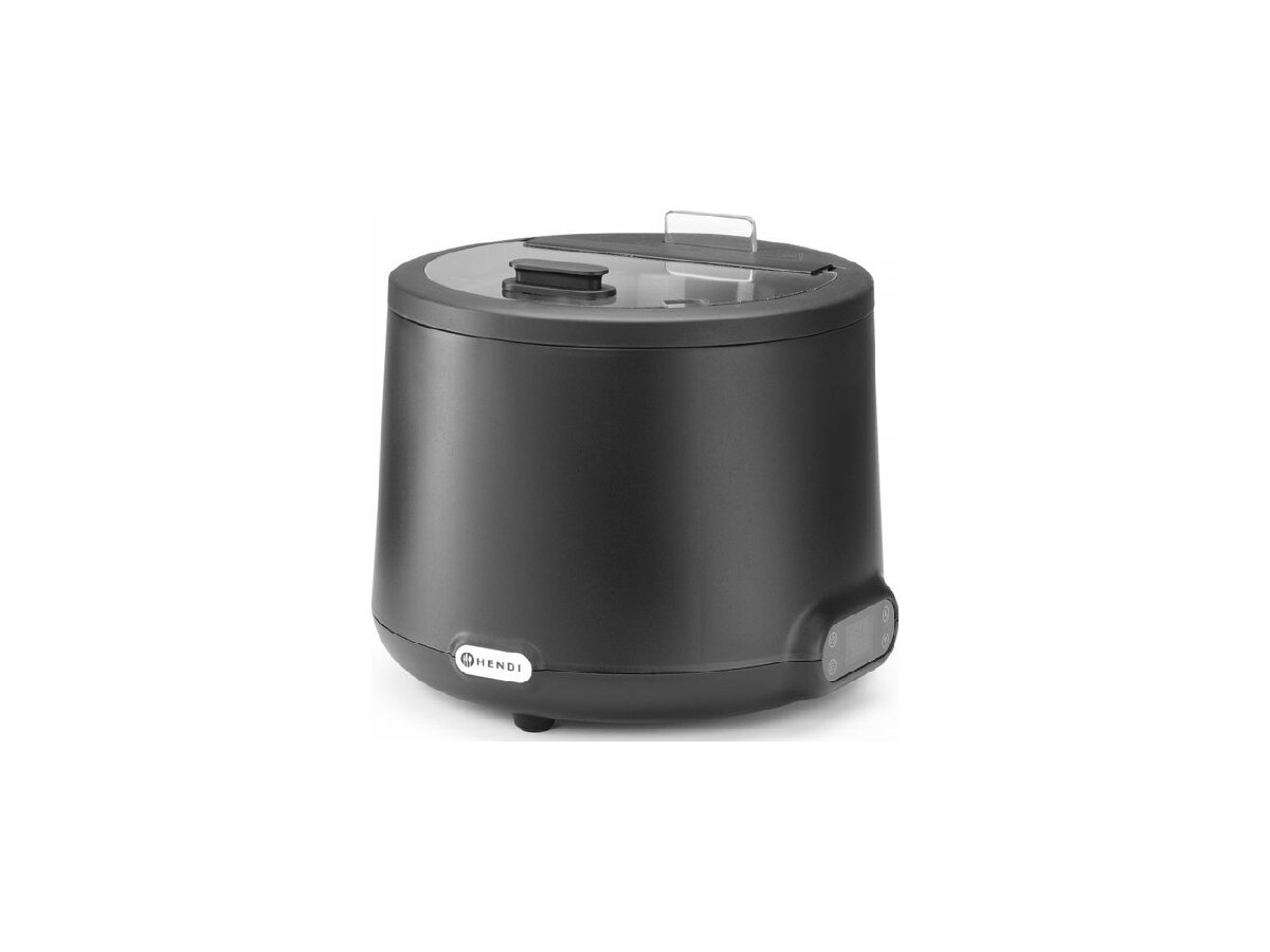 Der HENDI UNIQ Suppenkessel wurde vom renommierten niederländischen Designer Robert Bronwasser entworfen und ist in drei stilvollen Farben erhältlich. Das moderne Gehäuse verfügt über einige äußerst praktische Funktionen. Der präzise Wassersensor verhindert ein Trockensieden und die zuletzt eingestellte Temperatur wird im Gerät gespeichert. Einfach einstecken und Wasserbehälter füllen und der Suppenkessel hält die Suppe auf Serviertemperatur.