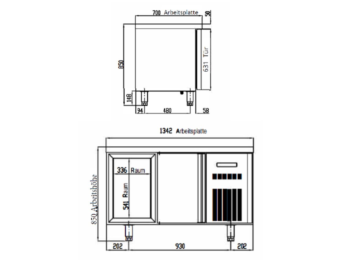 Edelstahl Tiefkühltisch vaiotec TOPLINE 700 mit 2 Türen, Aufkantung und Umluftkühlung