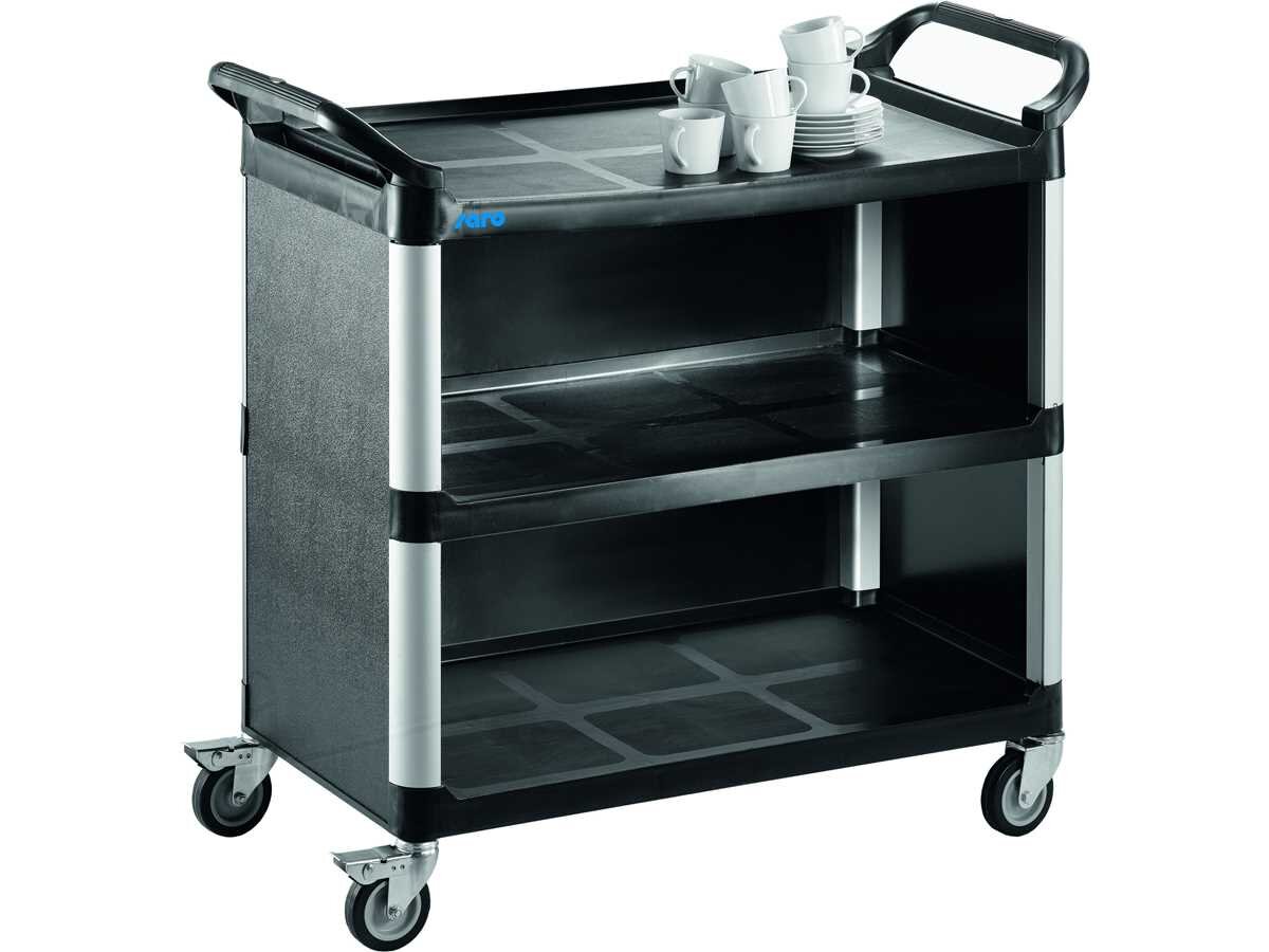 Der Saro Transportwagen ZOKA 2 ist die ideale Loesung fuer den effizienten Transport in der Gastronomie. Mit seinen drei Borden und einer Tragfaehigkeit von ca. 150 kg bietet er ausreichend Platz und Stabilitaet fuer den professionellen Einsatz.