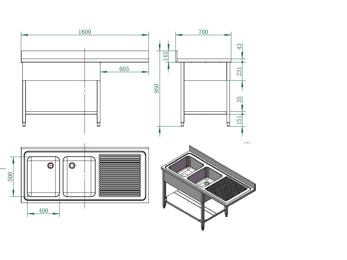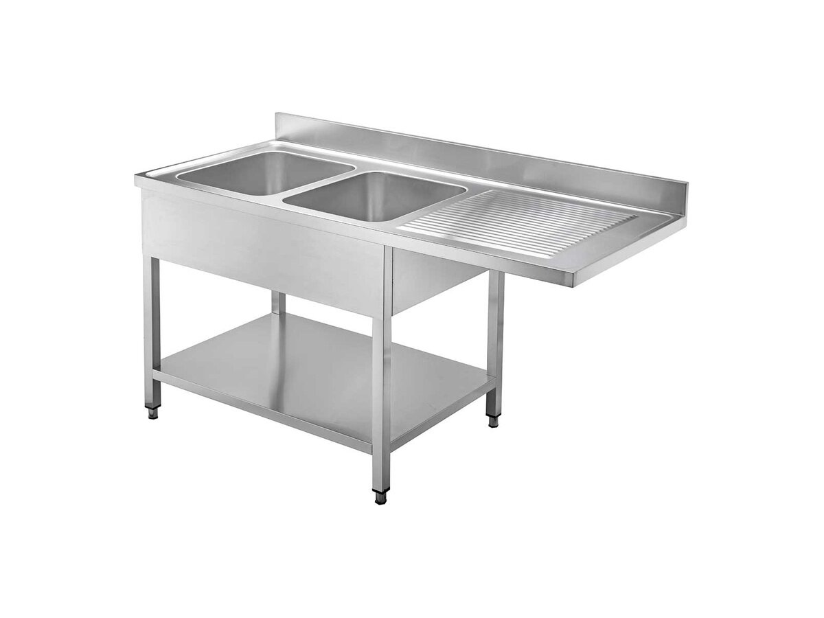 Robustes vaiotec EASYLINE 700 Spülzentrum mit 2 Becken links und Grundboden in Breite 1600 mm