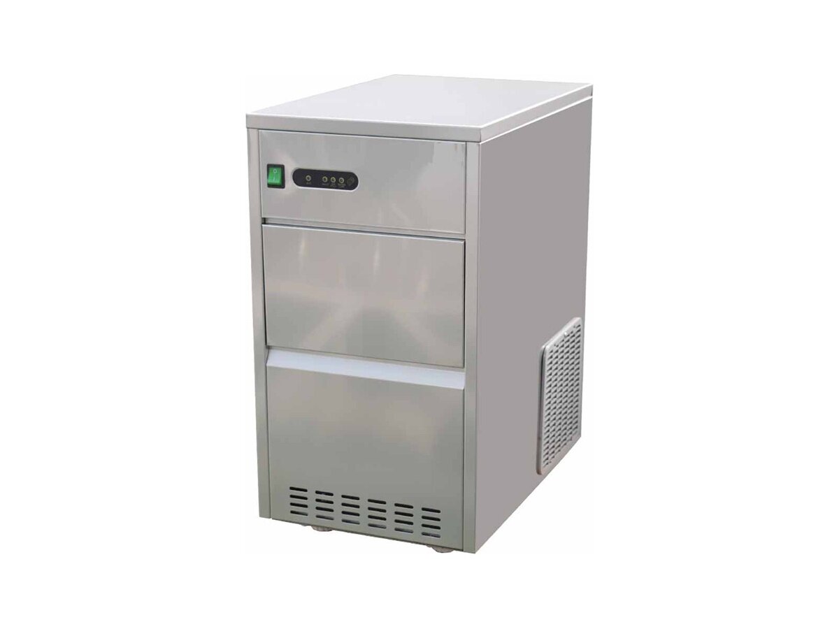 Der Eiswürfelbereiter ist innen und außen aus Edelstahl gefertigt und lässt sich dank der abgerundeten Ecken im Innenraum leicht reinigen. Das luftgekühlte System erfüllt alle Hygiene- und Sicherheitsrichtlinien und ist für eine schnelle und saubere Nutzung optimiert.