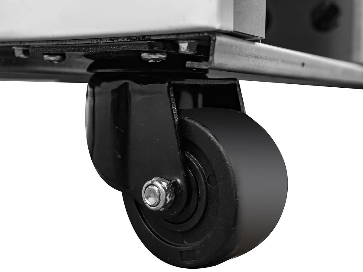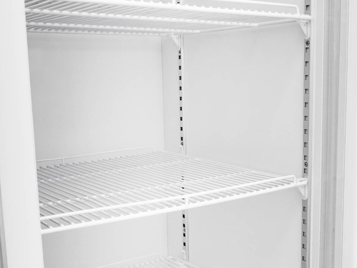 Der Kühlschrank überzeugt durch automatische Abtauung, ein Gebläseverdampfersystem und eine beleuchtete LED-Displayleiste. Die selbstschließenden, doppelverglasten Türen mit Aluminiumrahmen und die pflegeleichte Oberfläche aus pulverbeschichtetem Stahlblech in Weiß sind ideal für professionelle Ansprüche. Praktische 8 Rollen mit 2 Bremsen ermöglichen flexibles Positionieren.