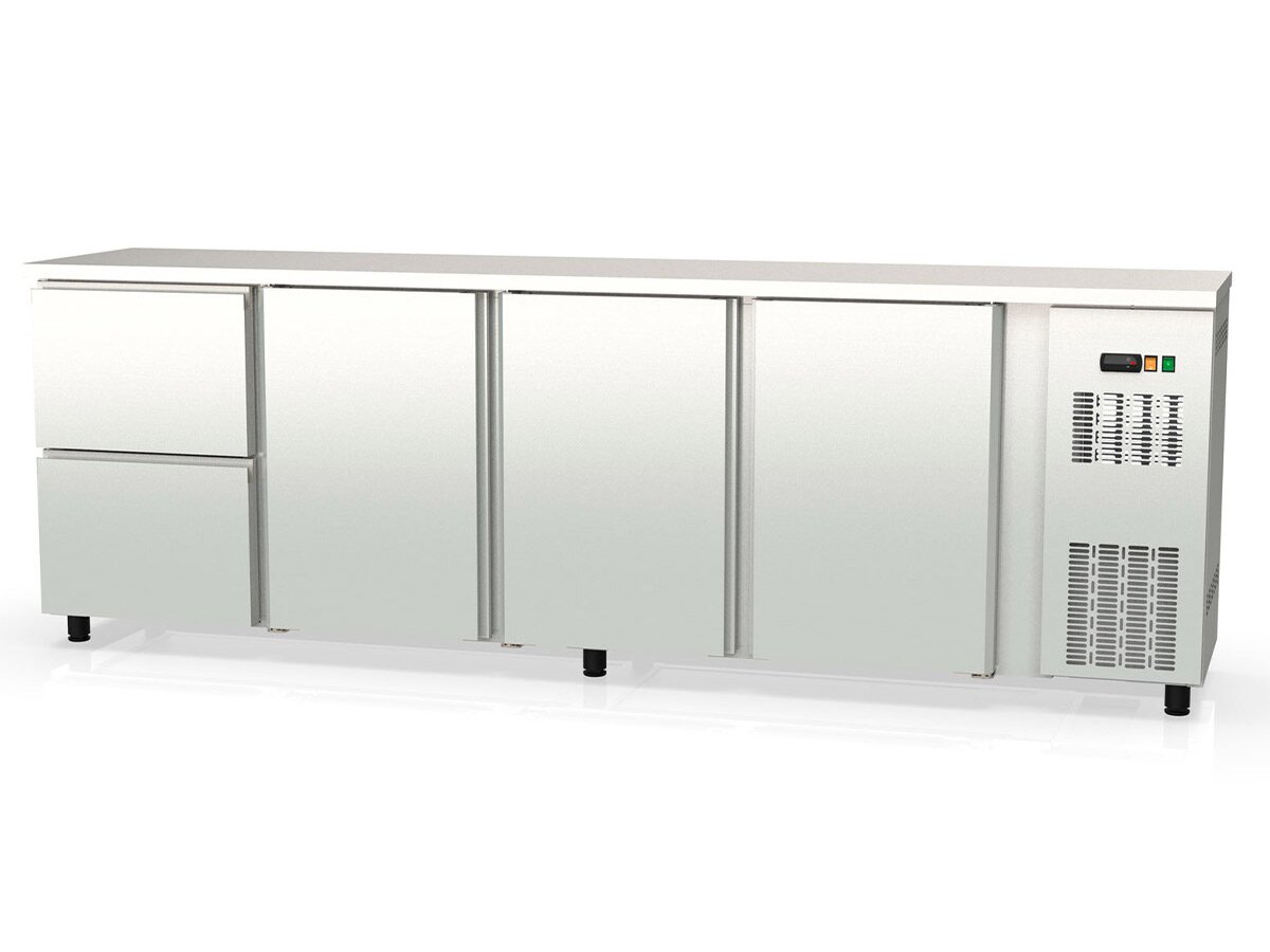 Entdecken Sie den vaiotec TOPLINE 530 Barkühltisch – die ultimative Lösung für Ihre Kühlbedürfnisse! Dank seiner leistungsstarken Umluftkühlung und automatischen Abtauung garantiert er eine präzise Temperaturkontrolle im Bereich von 0°C bis +7°C. Ausgestattet mit bis zu 4 Türen oder 8 Schubladen, Gebläseverdampfersystem und hochwertigem Thermostat bietet er die perfekte Kombination aus Funktionalität und Stil. Erfüllen Sie Ihre Anforderungen an Komfort und Professionalität mit diesem robusten Kühltisch, der nach den modernsten Standards produziert wurde. Entdecken Sie jetzt die Vielseitigkeit und Qualität von vaiotec TOPLINE!